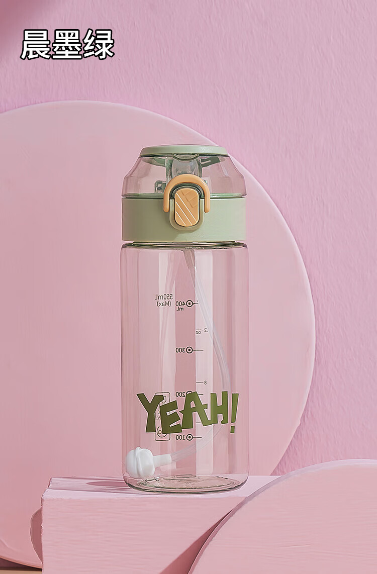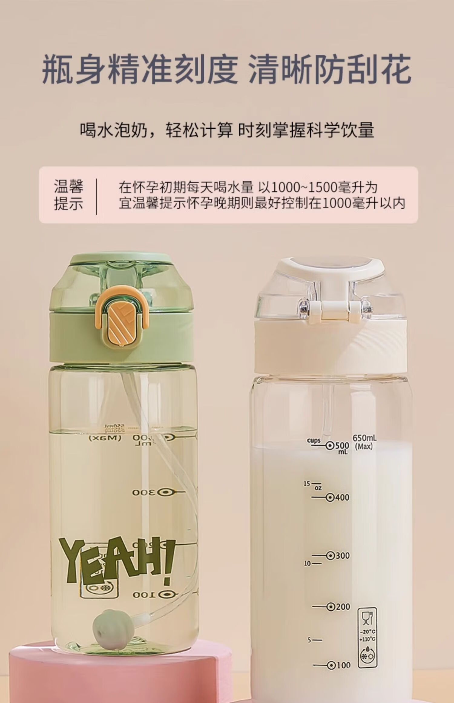 Xinmeiya Tritan Big Belly Cup Pregnant Women's Water Cup Large Capacity Portable High Temperature Resistant Plastic Cup Ton Bucket Women's Valentine Can Hold Boiling Water Green 650ml