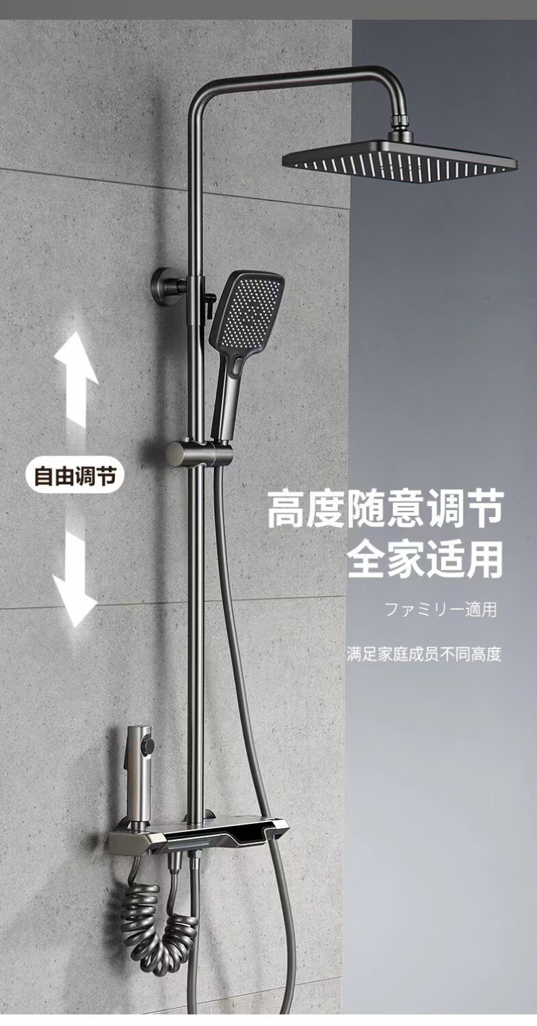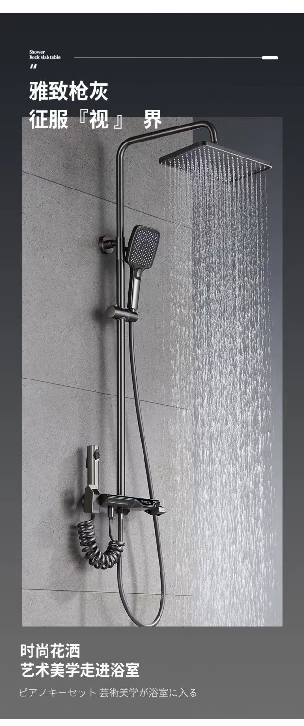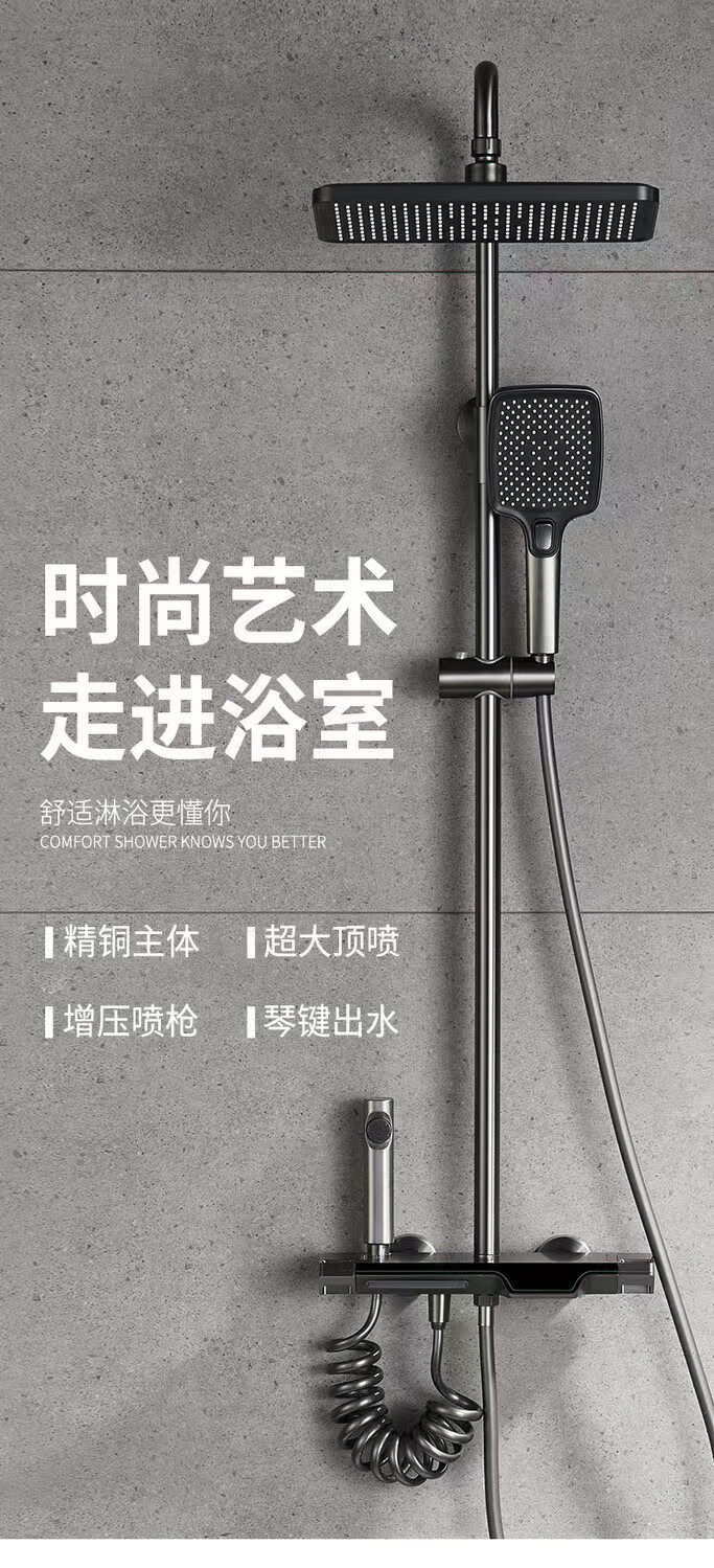 Water Pure Shower Full Set Bathroom Intelligent Constant Temperature Digital Display Booster Nozzle Ambient Light Rain Shower Set Gun Gray