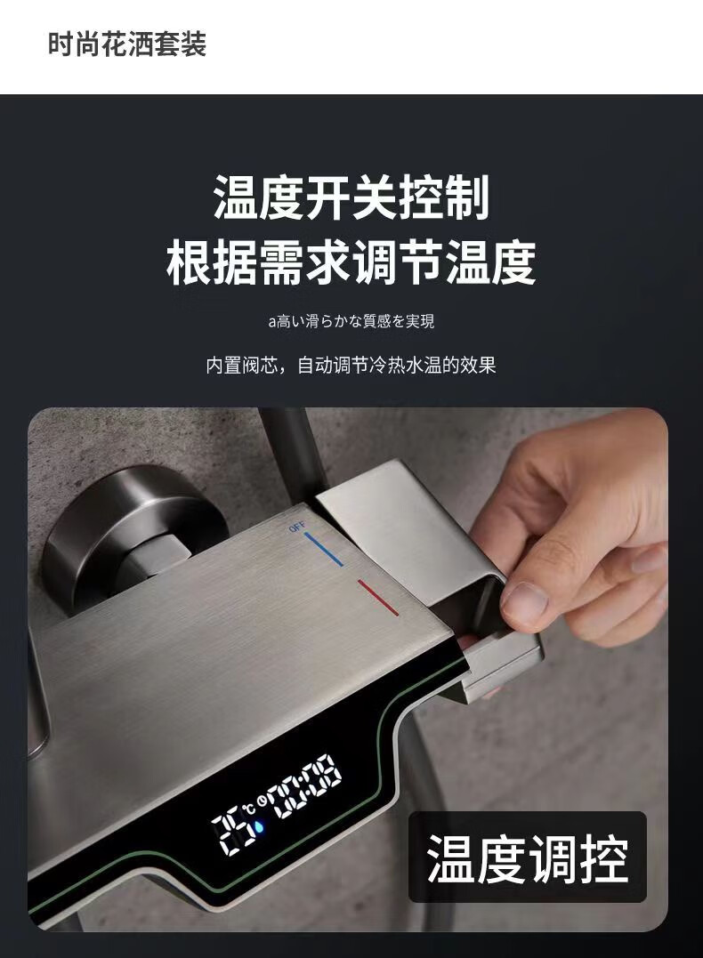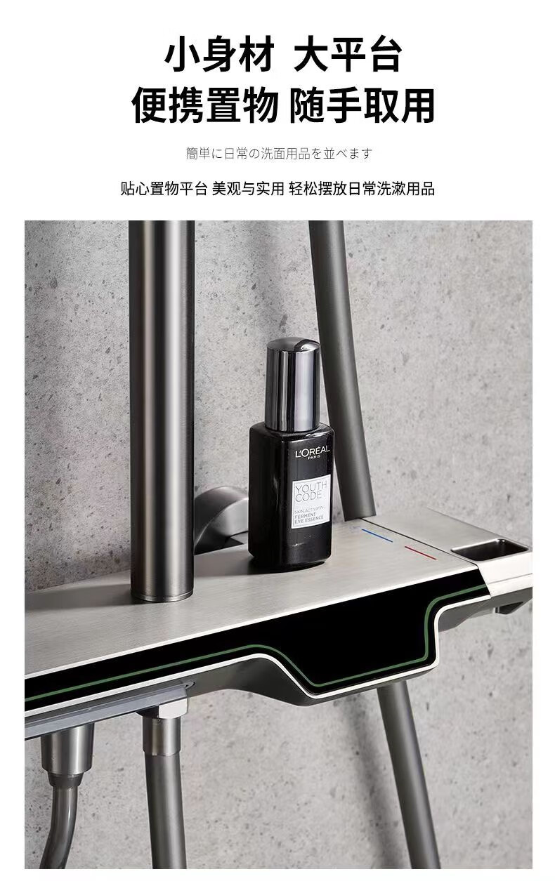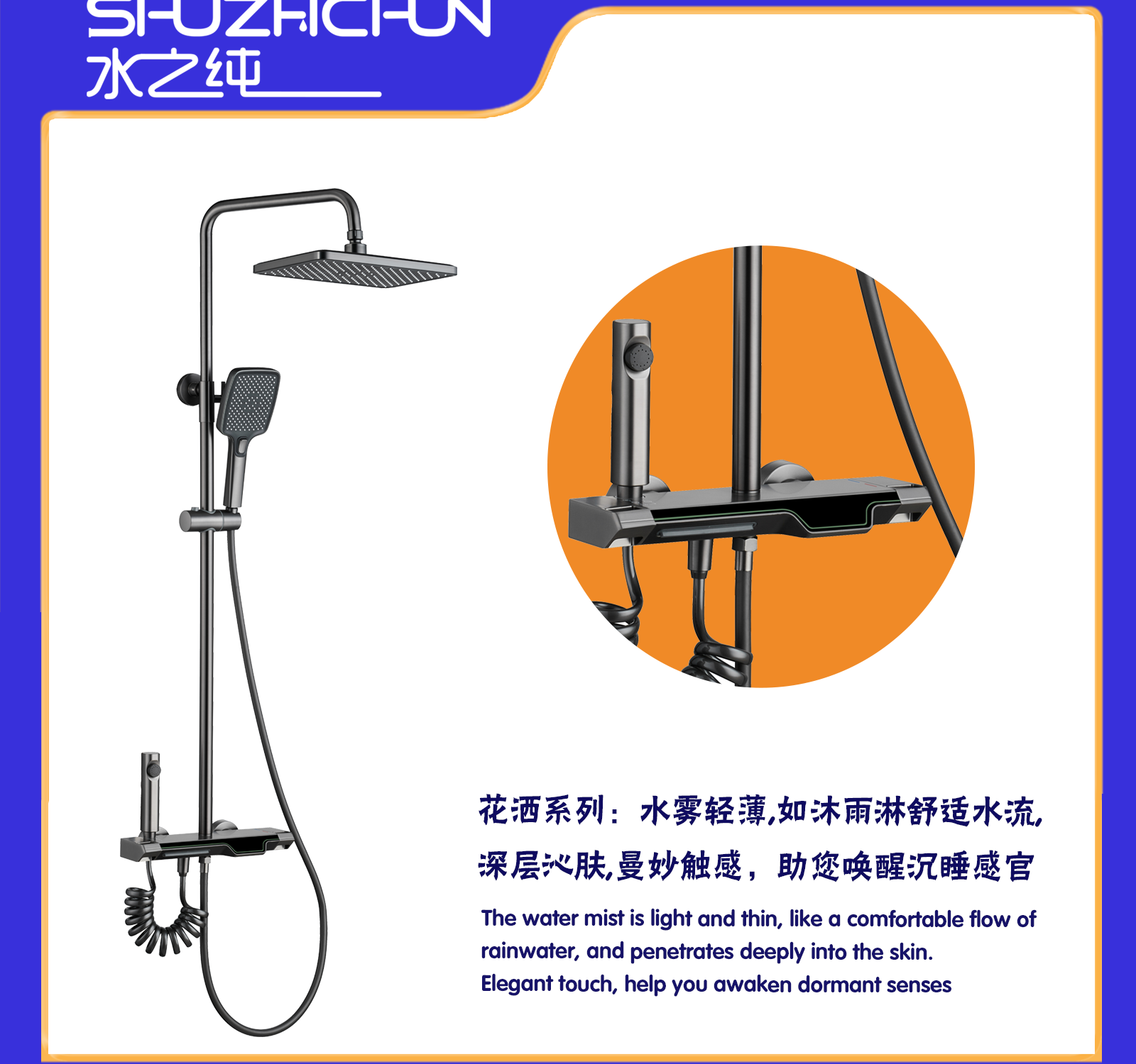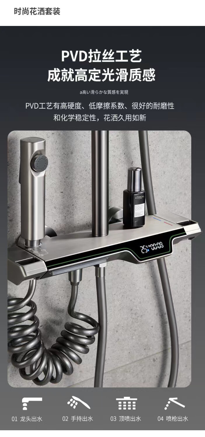 Water Pure Shower Full Set Bathroom Intelligent Constant Temperature Digital Display Booster Nozzle Ambient Light Rain Shower Set Gun Gray