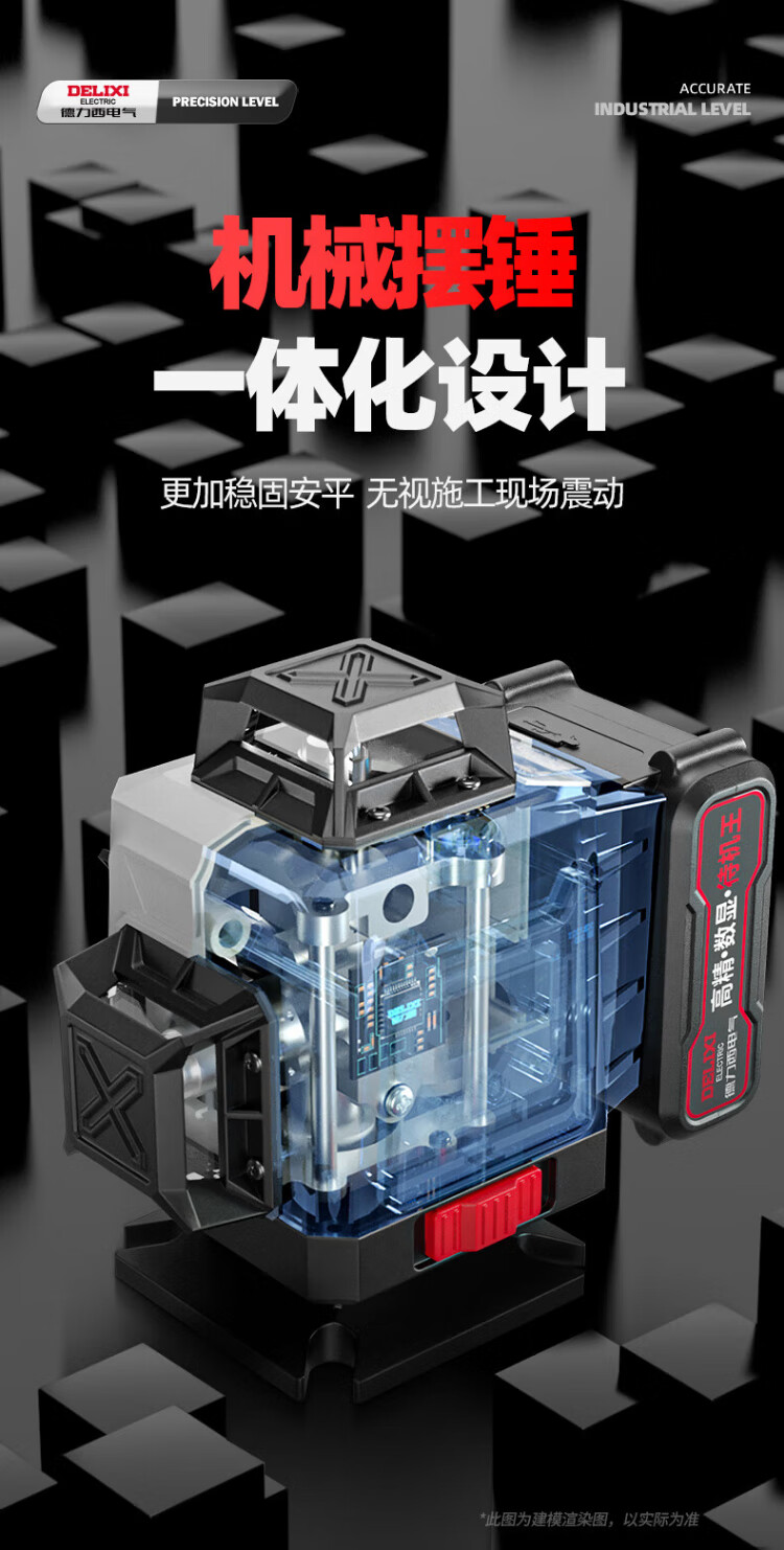 Delixi (DELIXI) infrared level high-precision strong light thin line 12-line laser level outdoor outdoor digital display screen green light 12-line standby king dual power