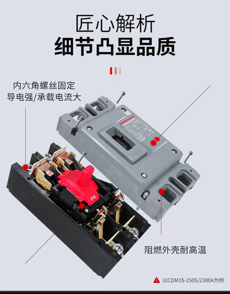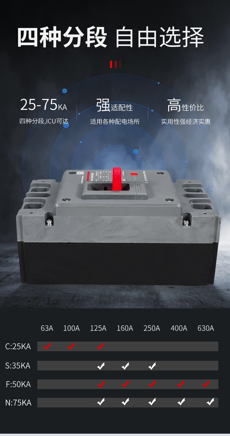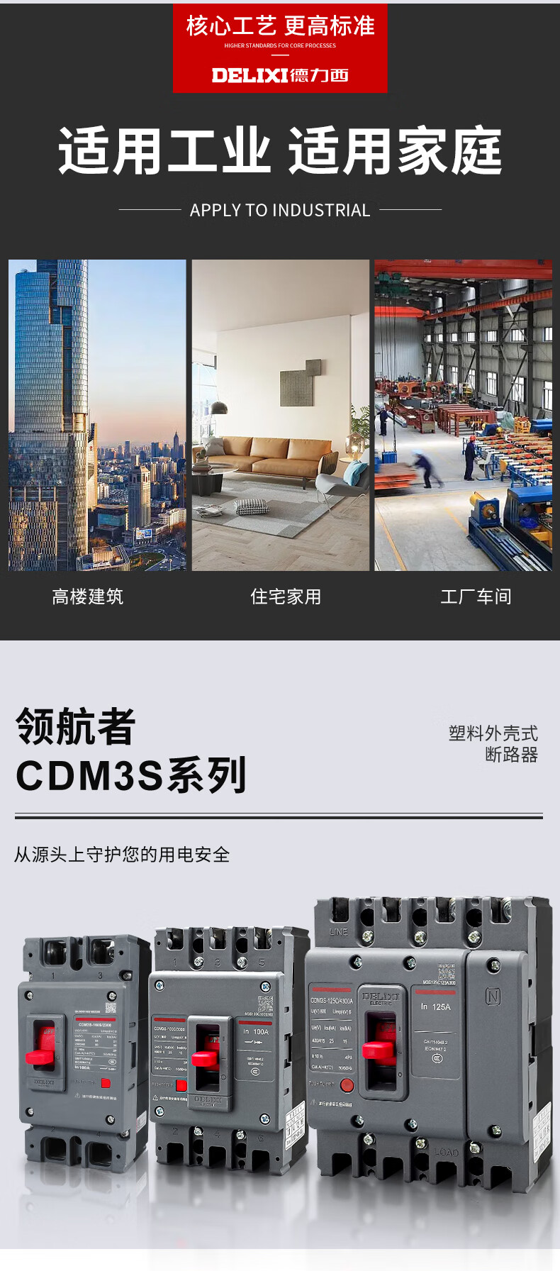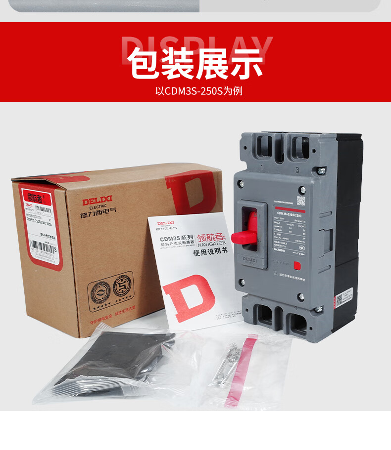 Delixi plastic case circuit breaker CDM3S air switch 2P125A160A200A250A household electric circuit breaker 250A 2P