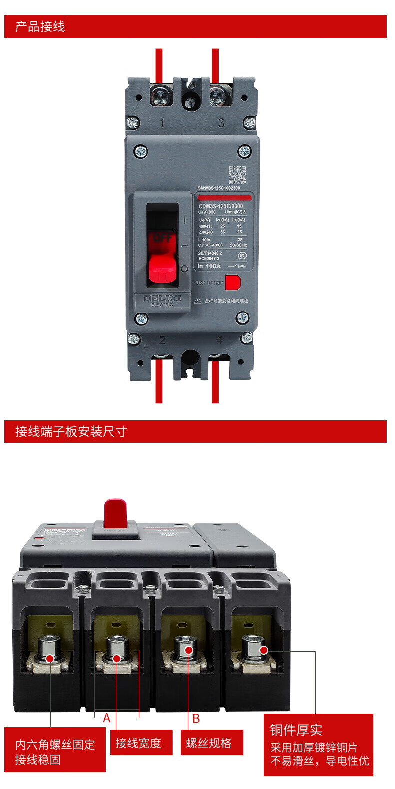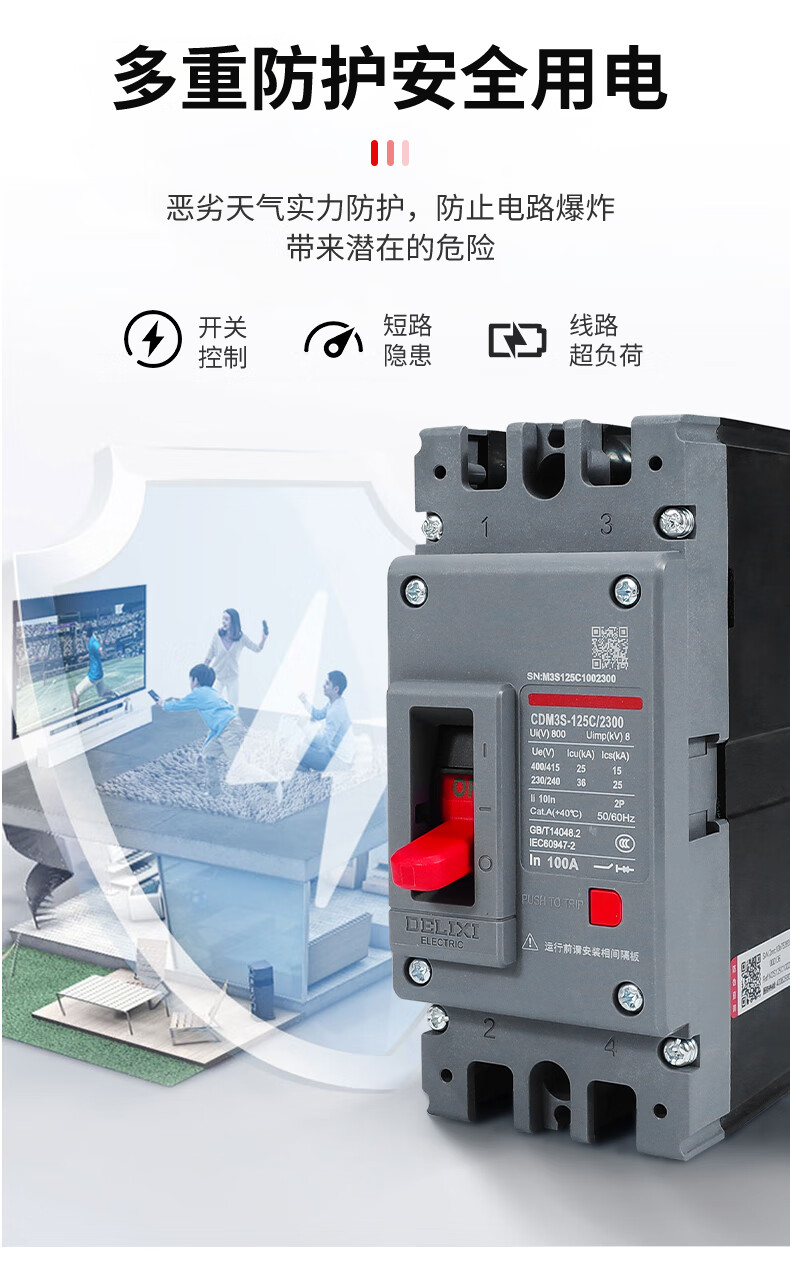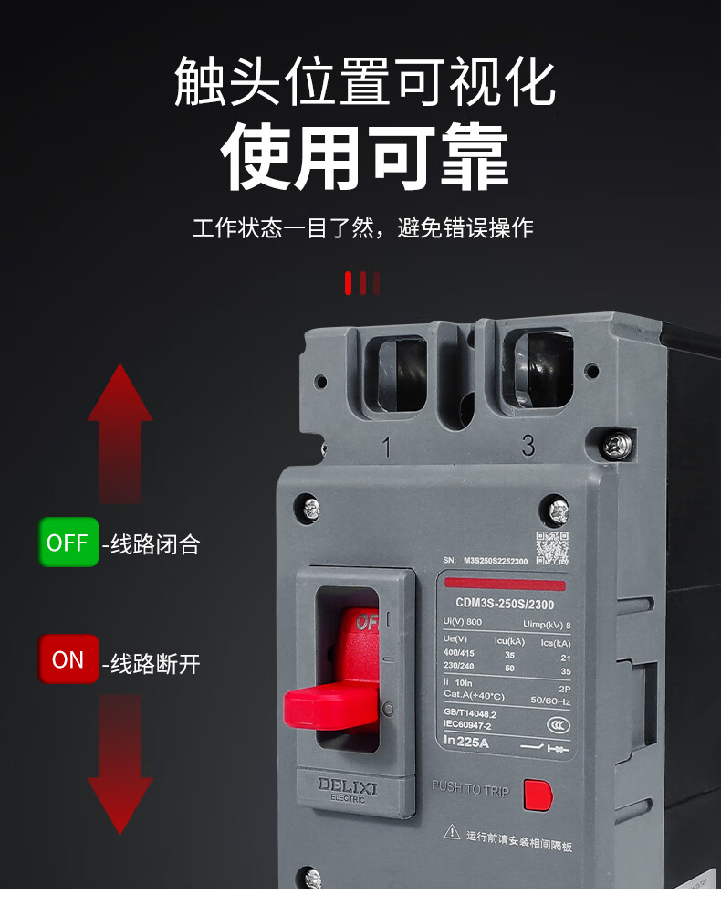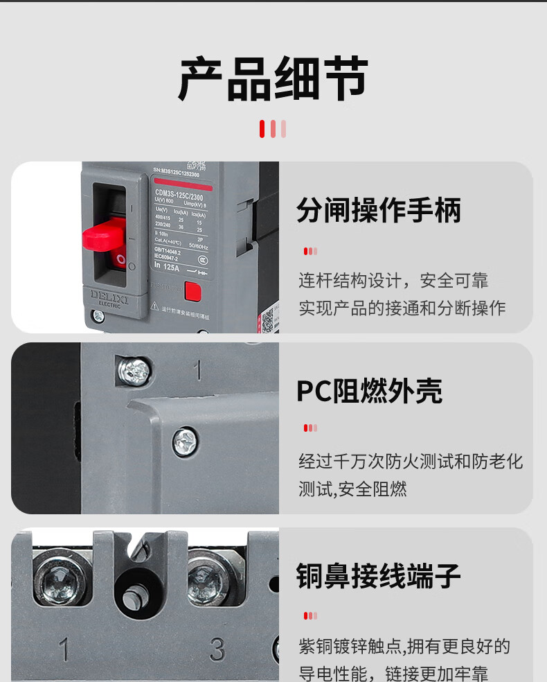 Delixi plastic case circuit breaker CDM3S air switch 2P125A160A200A250A household electric circuit breaker 250A 2P