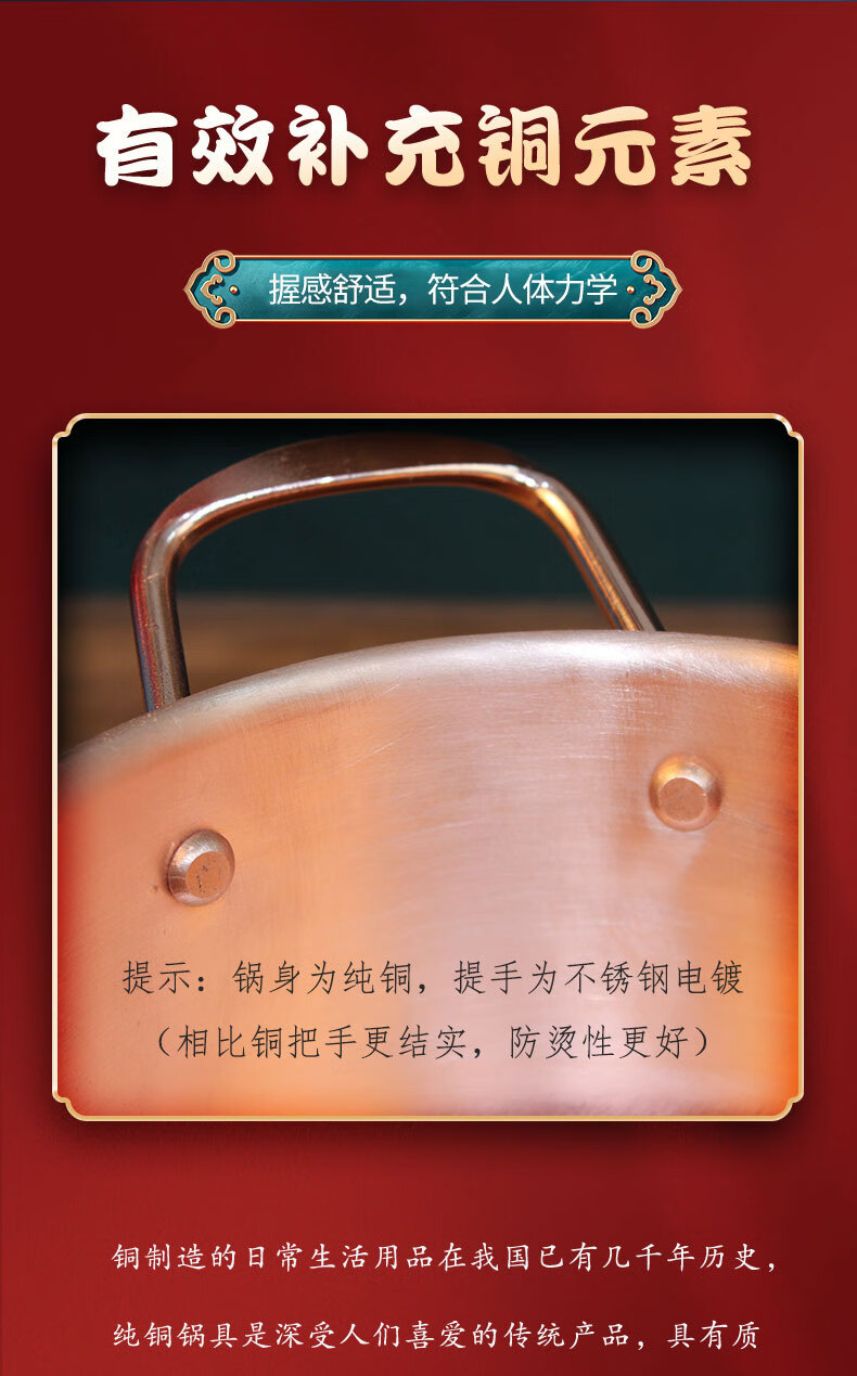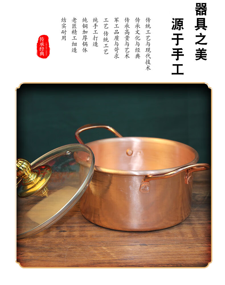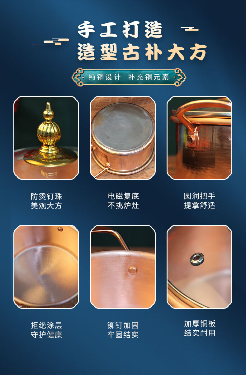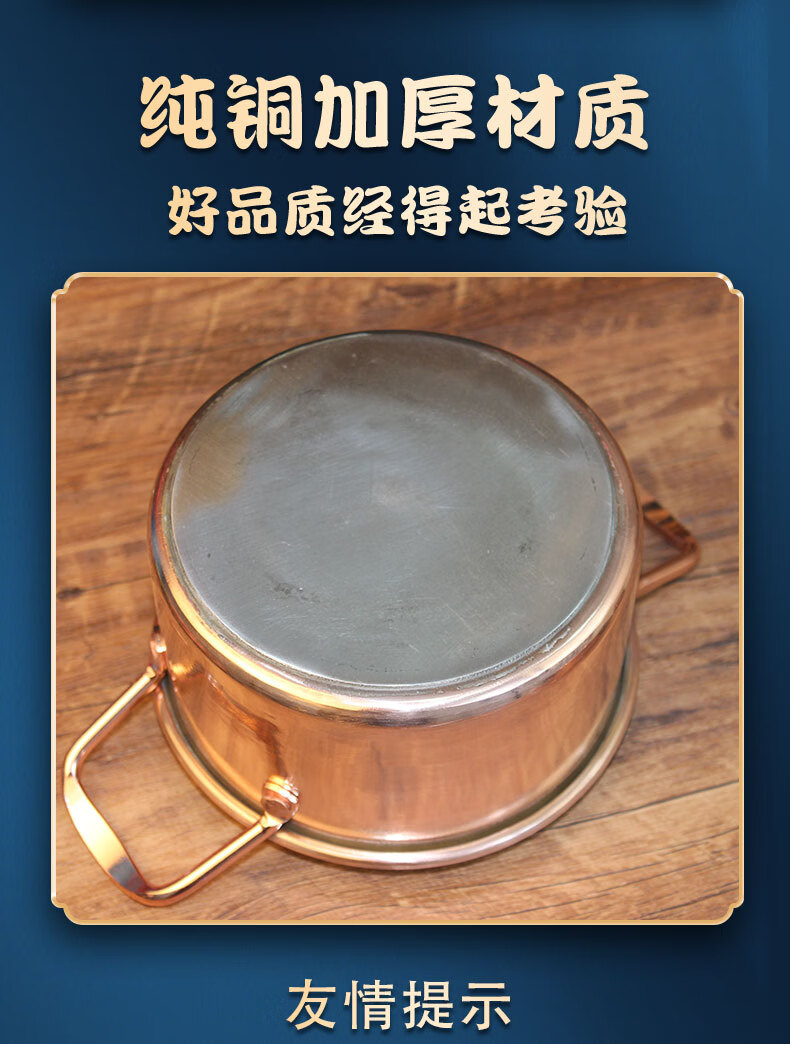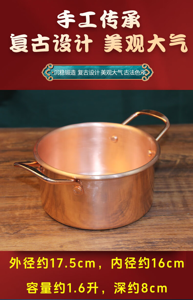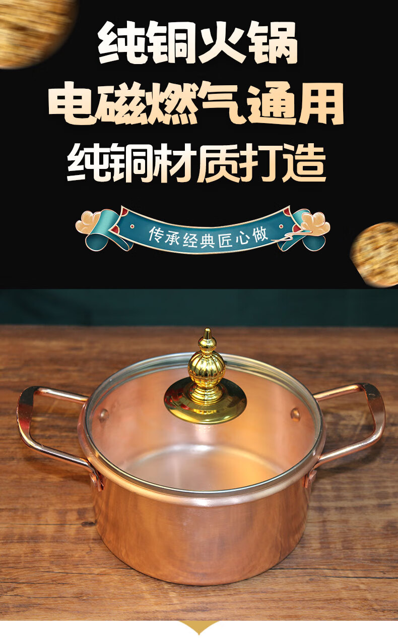 Tongweiju single-person induction cooker copper hot pot pure copper thickened meal-sharing small hot pot self-service small copper pot for one person for restaurant use electromagnetic gas universal model / inner diameter 16cm