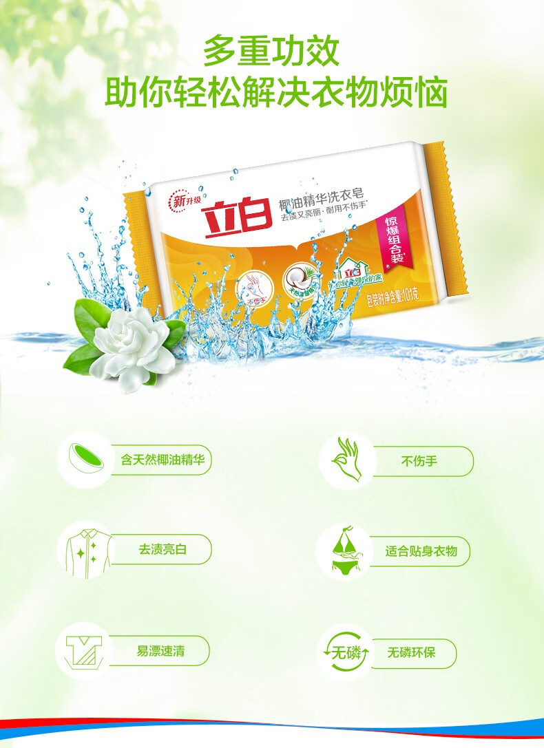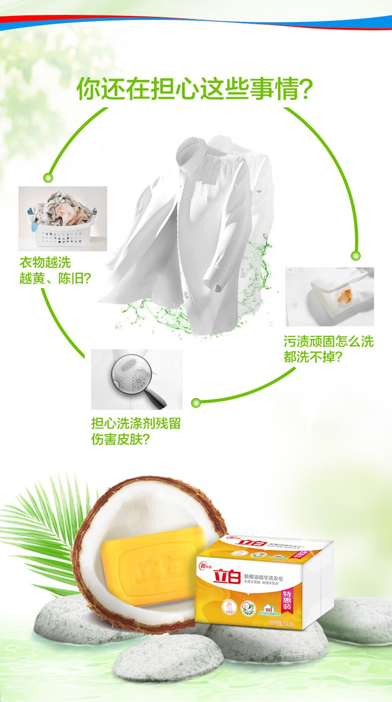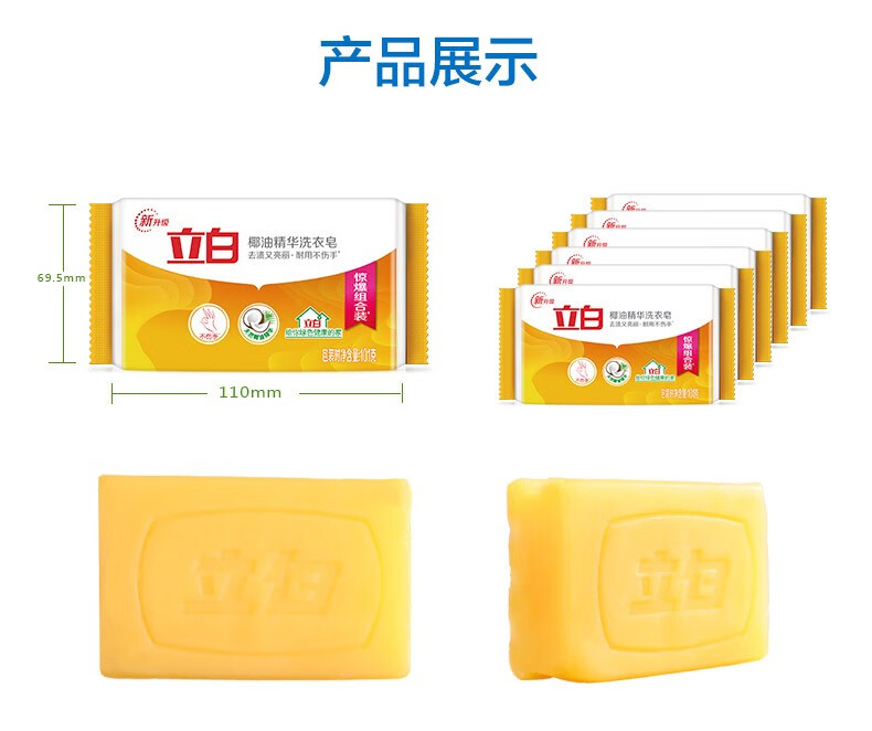 Liby Coconut Oil Essence Laundry Soap Transparent Soap Durable, Stain-Removing, No Yellowing, Mild and Non-irritating 101g Coconut Oil Essence Soap