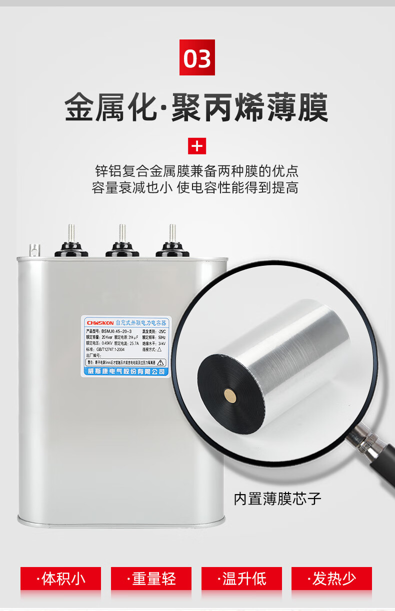 Electrical self-healing parallel power capacitor BSMJ0.45 common complementary three-phase 450v reactive power compensation 30kv BSMJ0.45-35-3