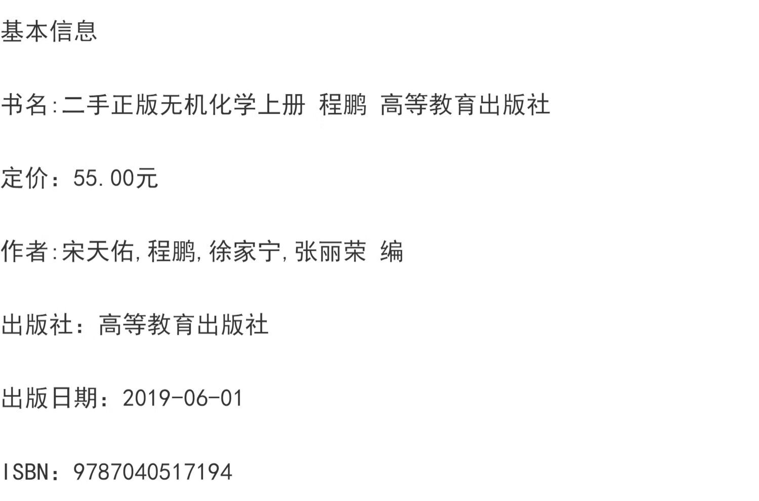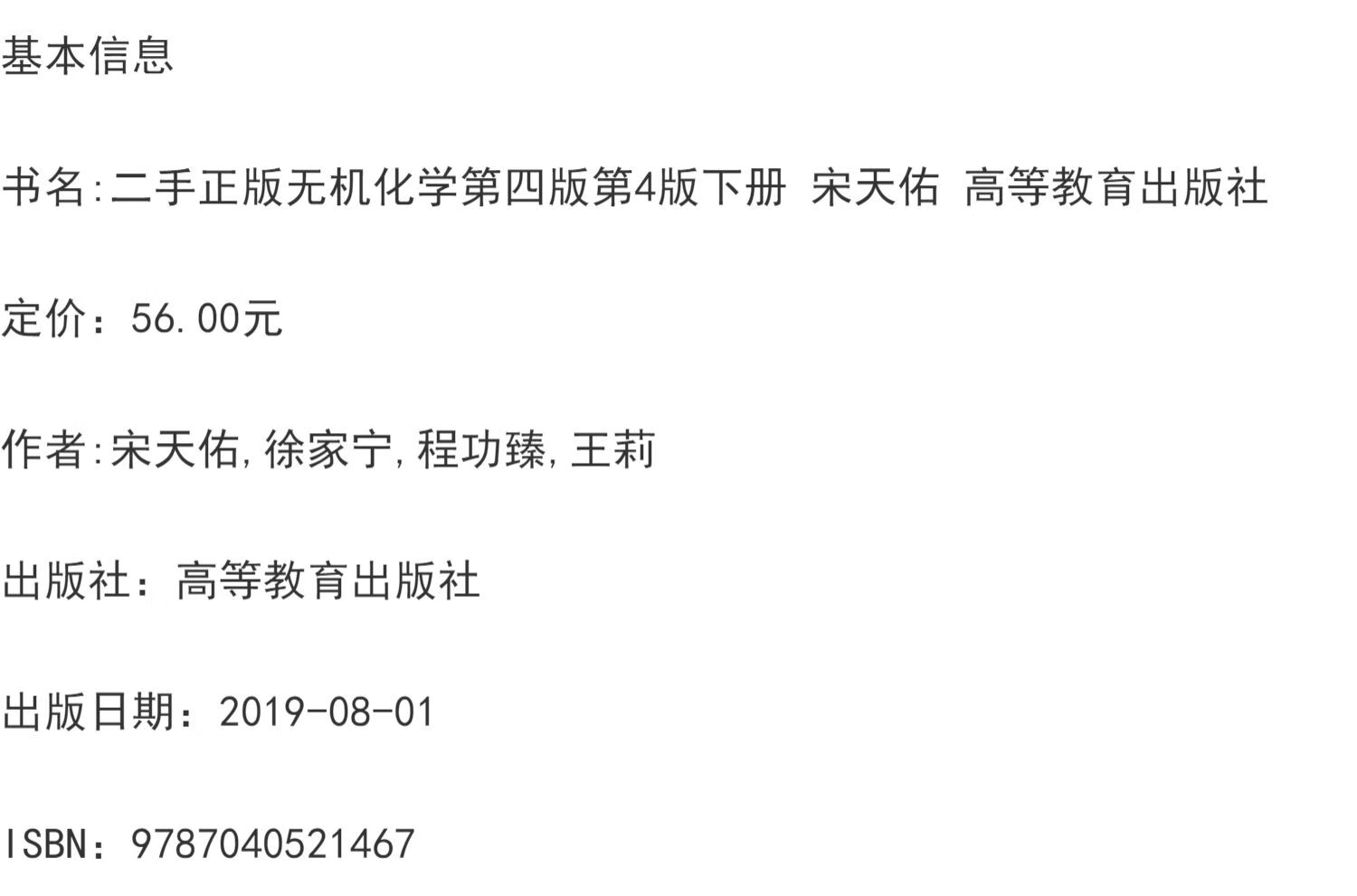 Second-hand books (Second-hand books) Inorganic Chemistry 4th edition textbook (volume 1 and 2), question and answer tutorial Song Tianyou Higher Education, volume 1 and 2 + question and answer