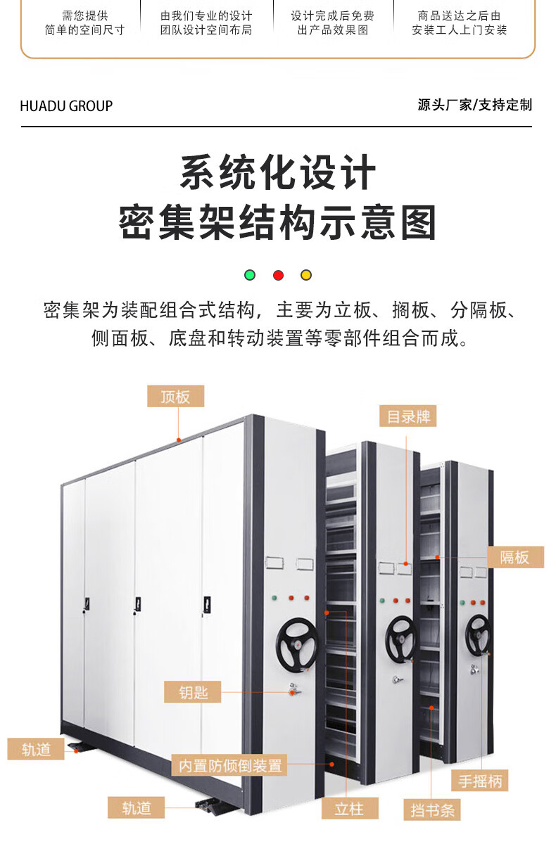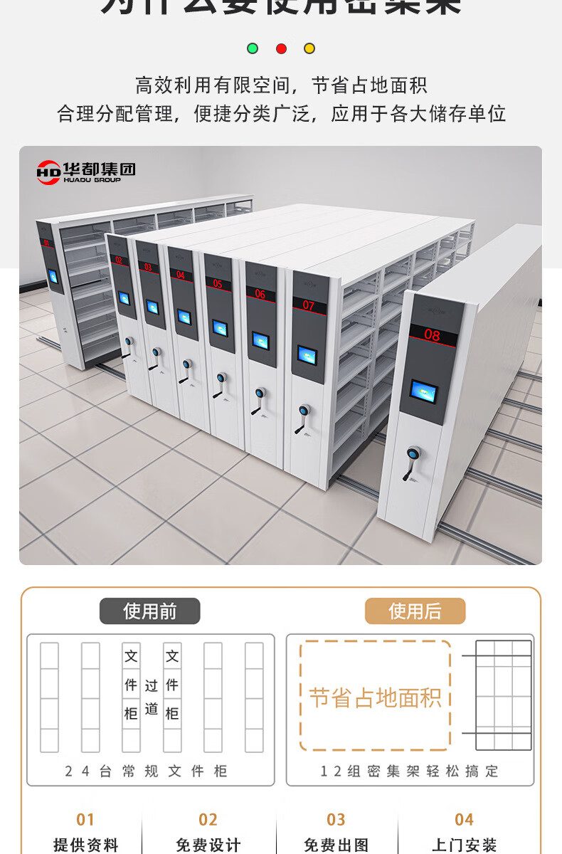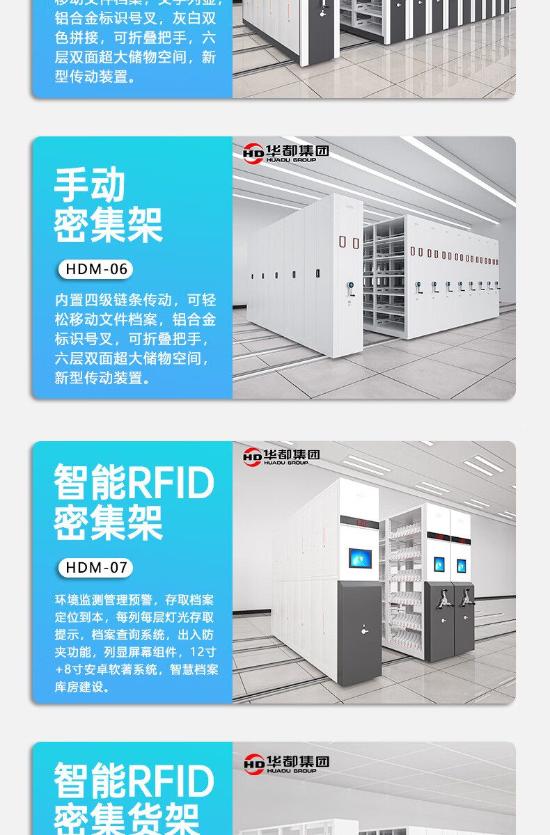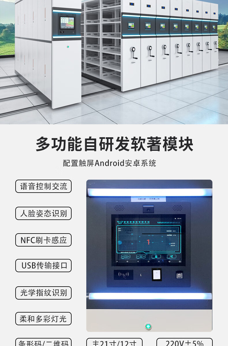 Smart Archives Warehouse RFID Intelligent Compact Rack Electric Compact Cabinet Hand-cranked Mobile File Cabinet Archive Room Positioning RFID Compact Rack Three Groups in One Row 4.01m3/Unit Price per Cubic