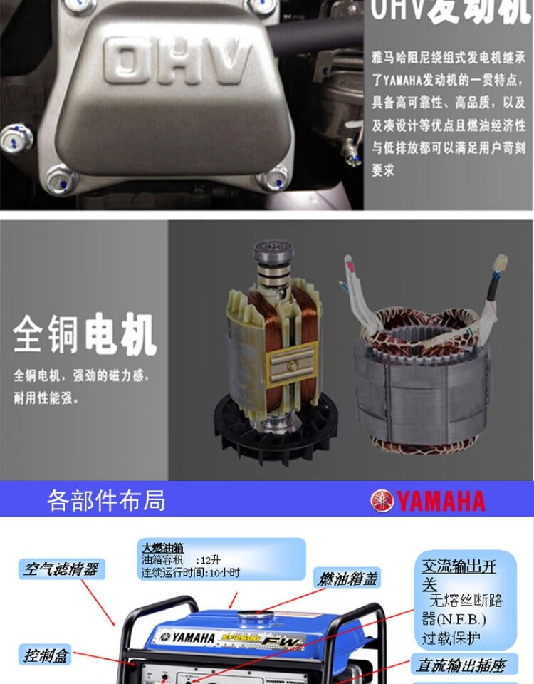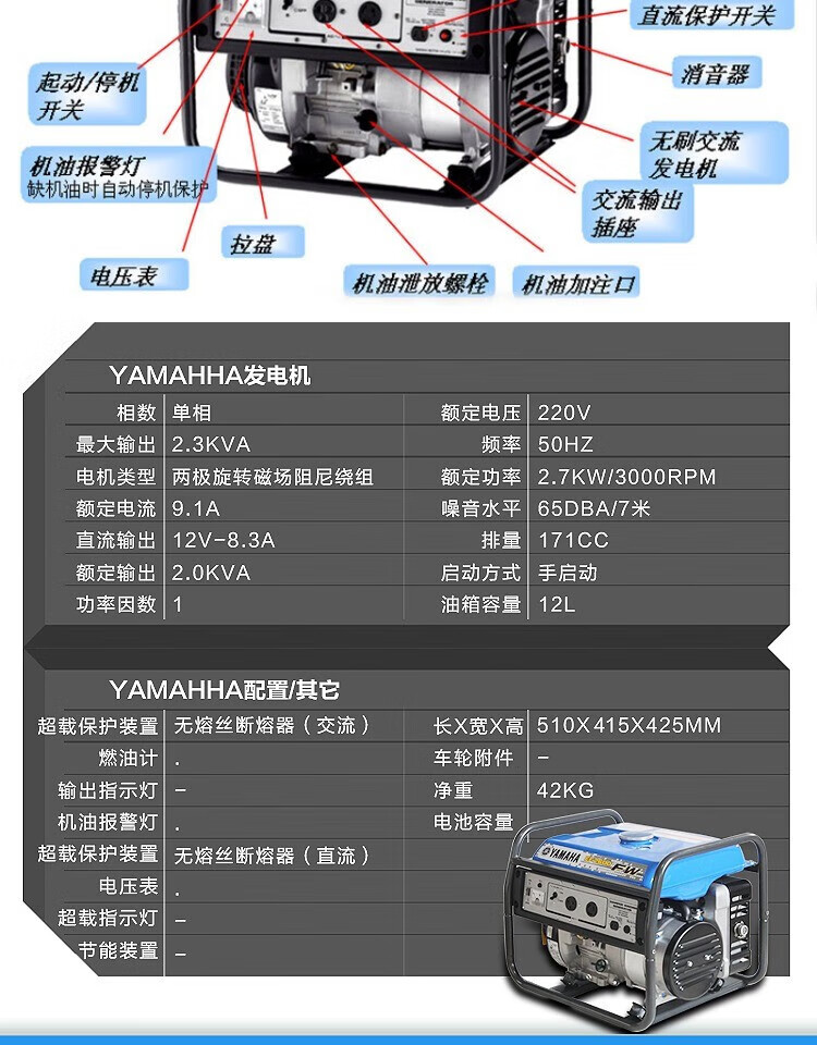 Yamaha (YAMAHA) YAMAHA2/3/5/8 kilowatt 10KW power generation 220V single-phase three-phase 380 650 watt hand start single-phase 220V