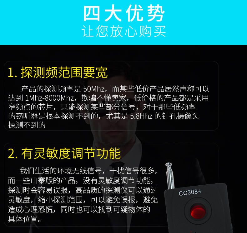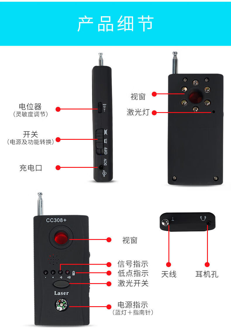 Feitu anti-eavesdropping and anti-candid surveillance camera GPS detector cc308+ wireless signal wave detector enhanced version