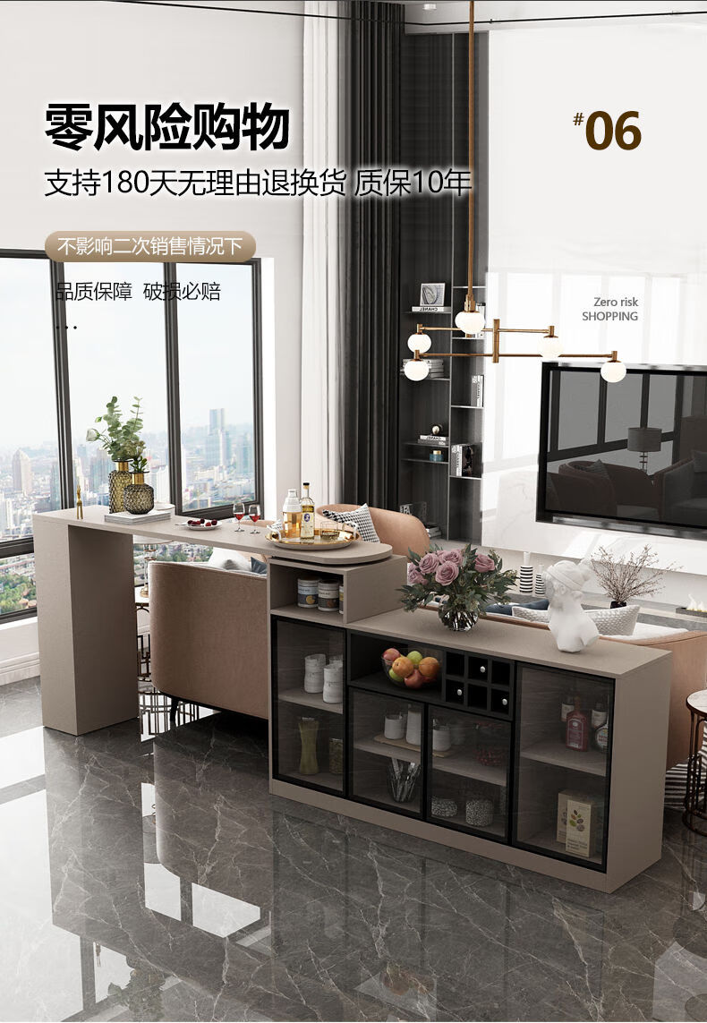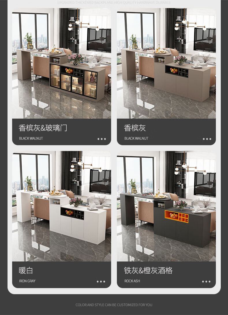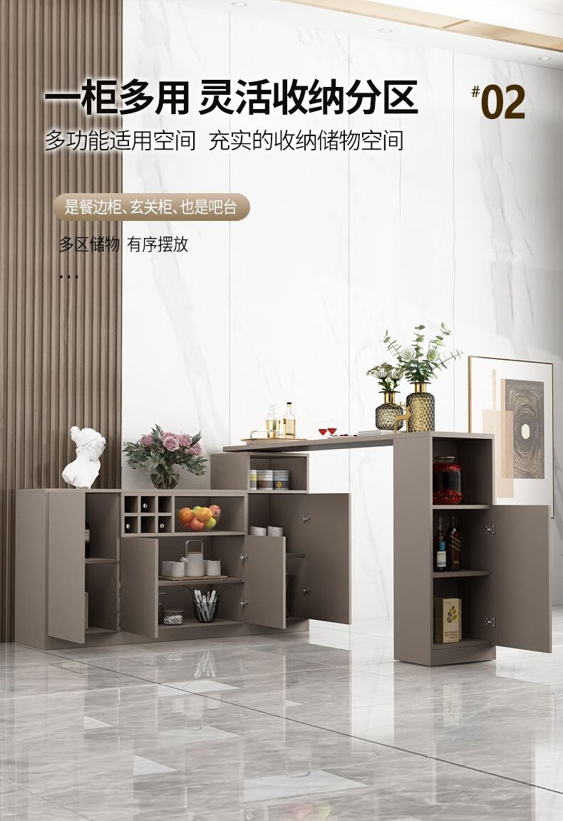 Bar table partition cabinet home living room sideboard integrated wall multi-functional wine cabinet island modern sand champagne gray 1.1 bar counter 08 cabinet