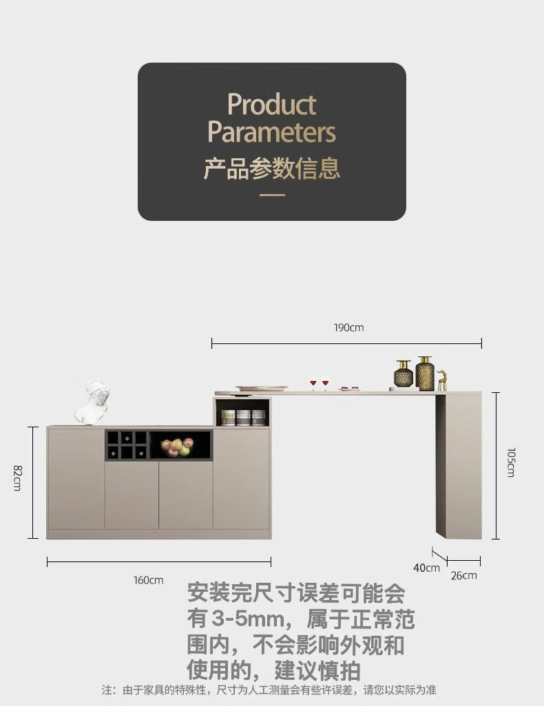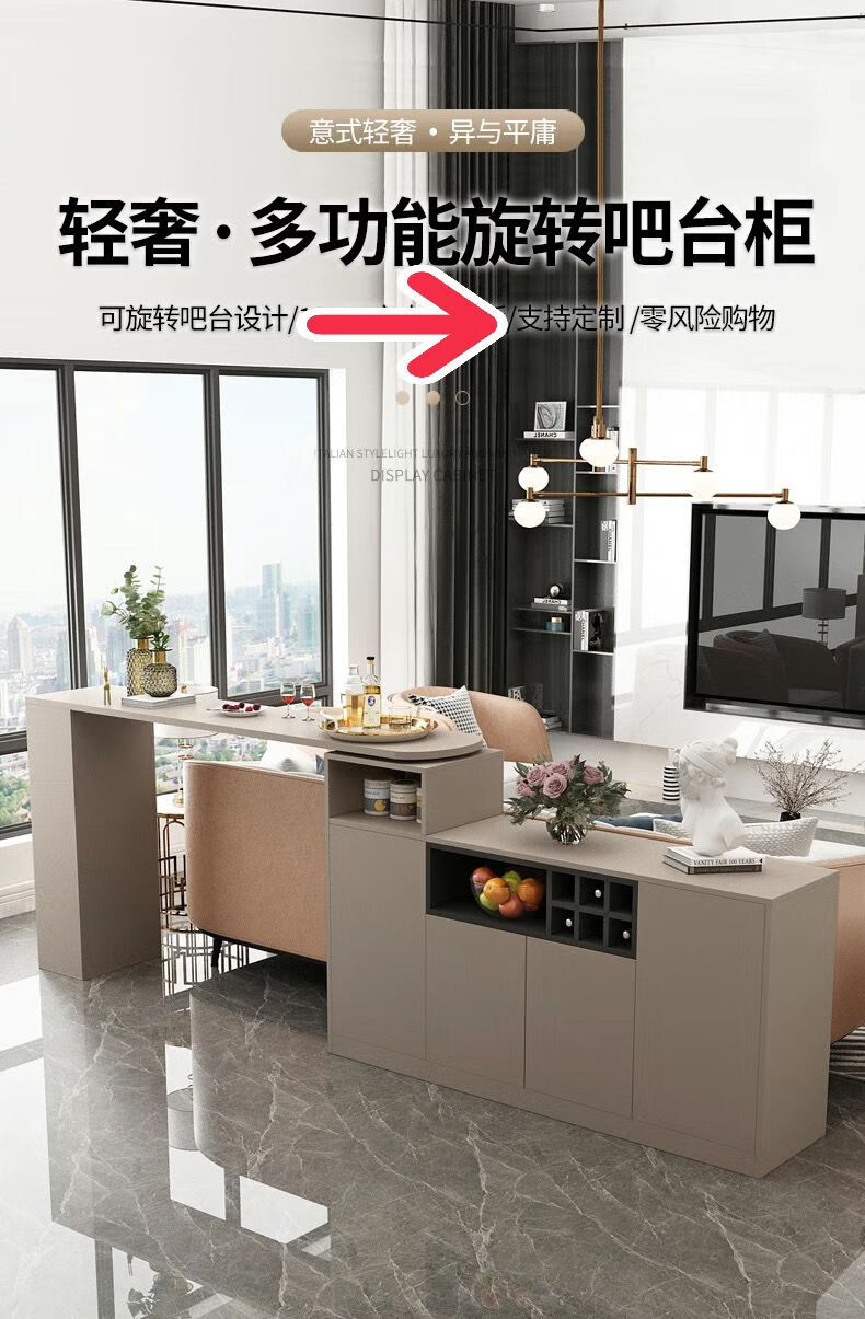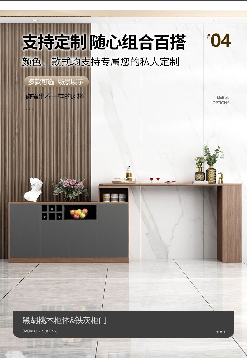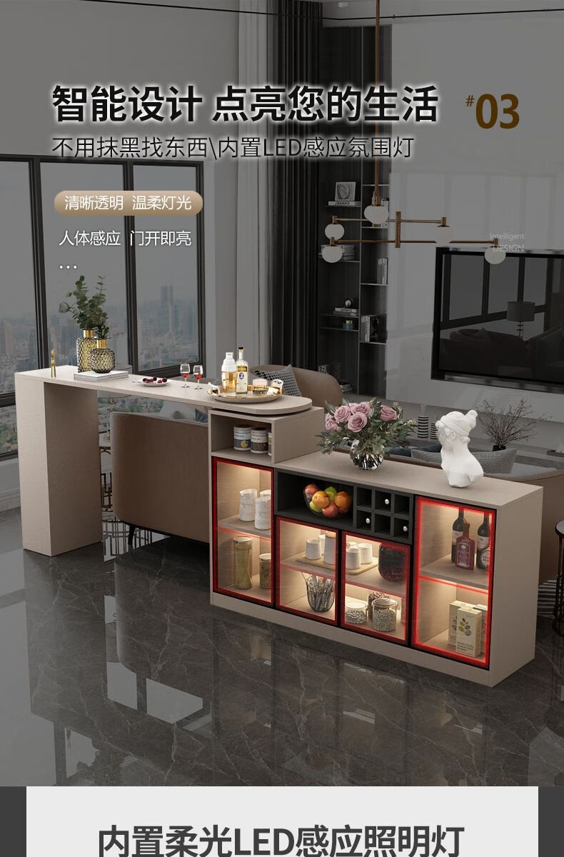 Bar table partition cabinet home living room sideboard integrated wall multi-functional wine cabinet island modern sand champagne gray 1.1 bar counter 08 cabinet