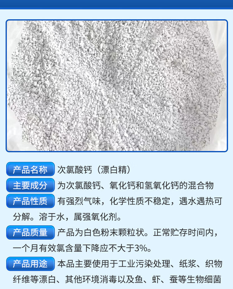 Industrial calcium hypochlorite bleaching powder, sewage treatment, ammonia nitrogen remover, bleaching, odor removal, sterilization, decolorization agent, calcium hypochlorite (25 kg packaging)