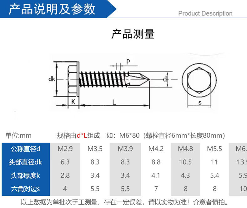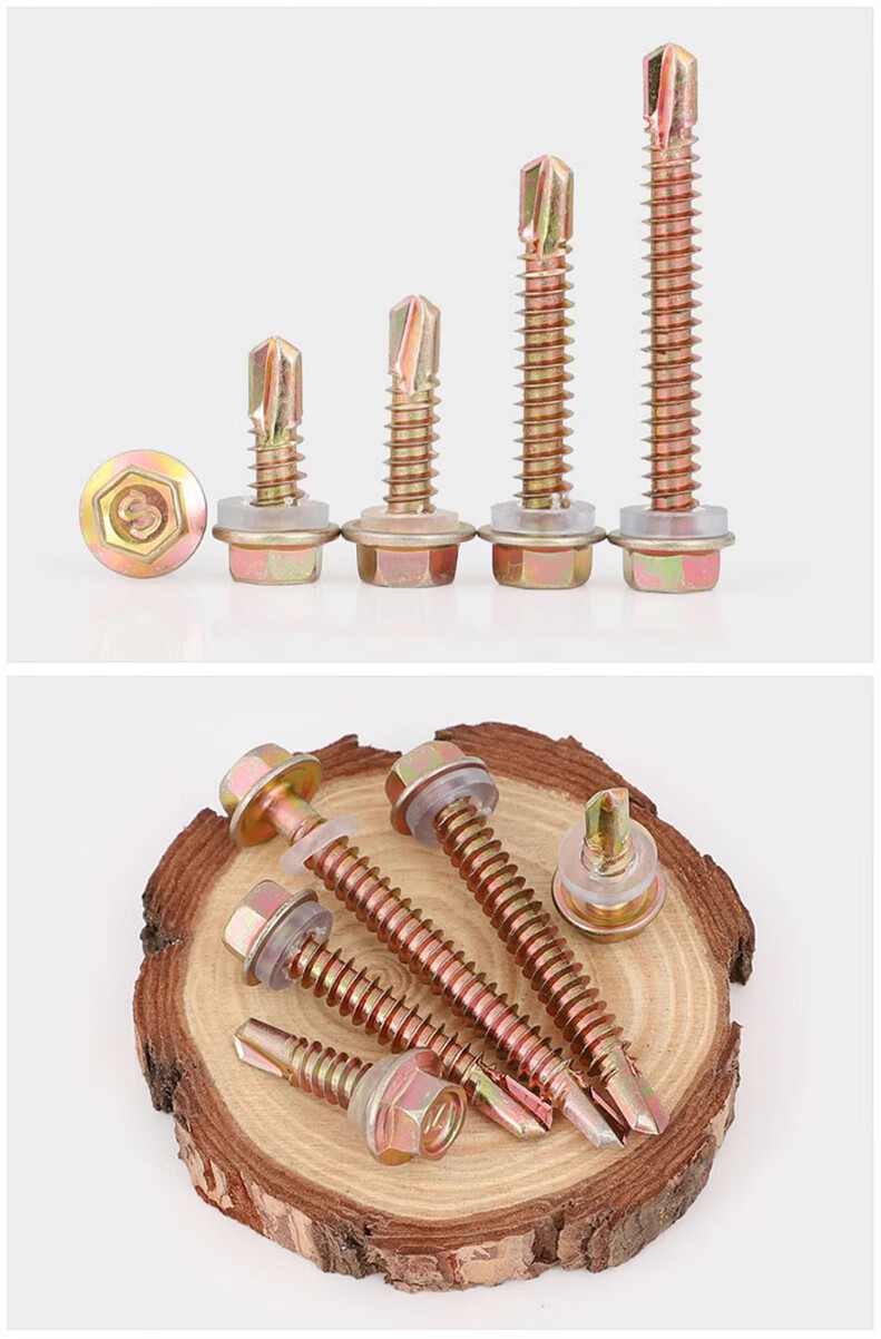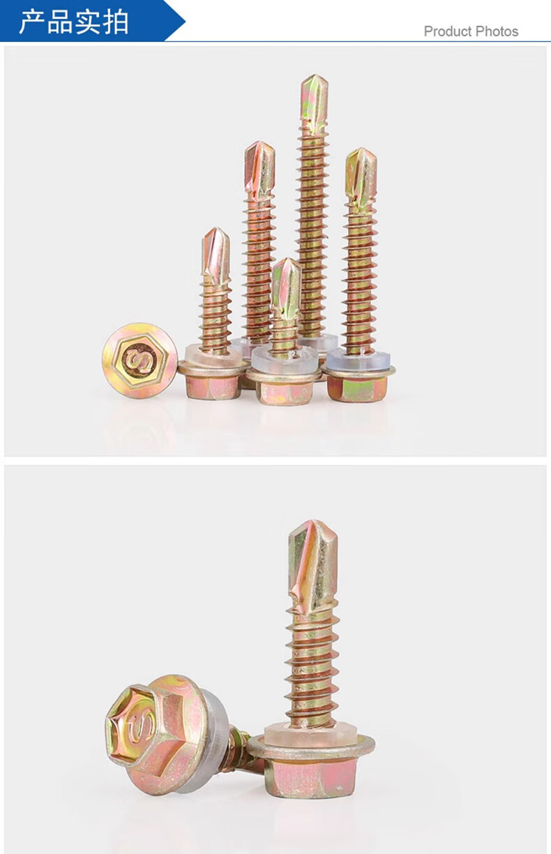 Tianzhuo Hardware national standard hard-plated galvanized external hexagon drill tail screws color steel tile dovetail screws self-drilling self-tapping M4.8M5.5M6.3 M4.8*20 50 pieces
