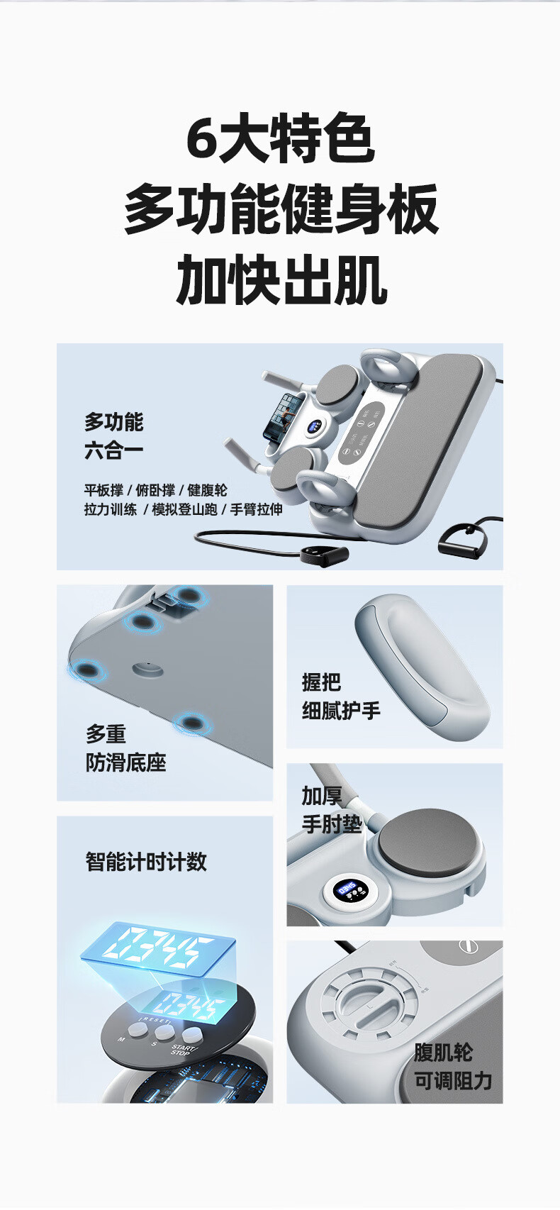 Chaoke (CAOOELCOL) Multifunctional Abdominal Board Abdominal Wheel Automatic Rebound Push-up Training Board Men and Women Slim Belly Magic Equipment Fitness Equipment Gray - Timer Counting + Pull Rope