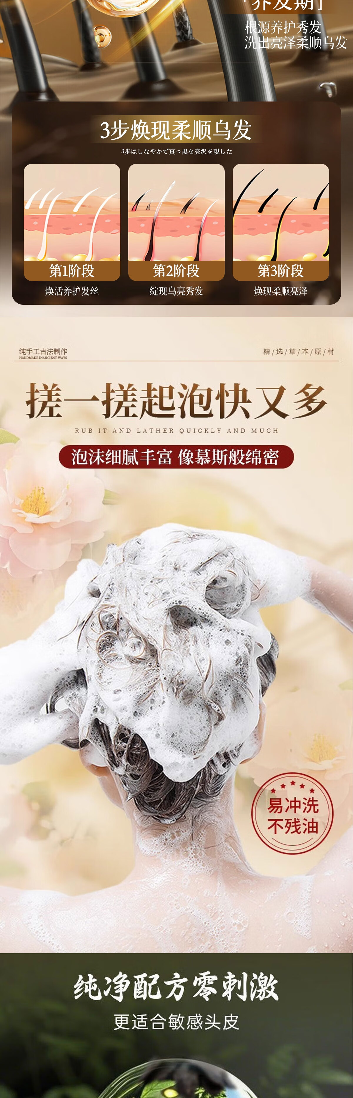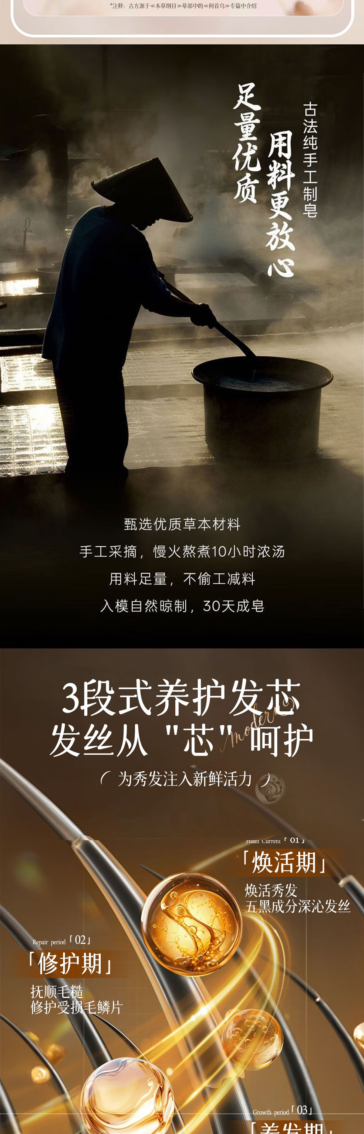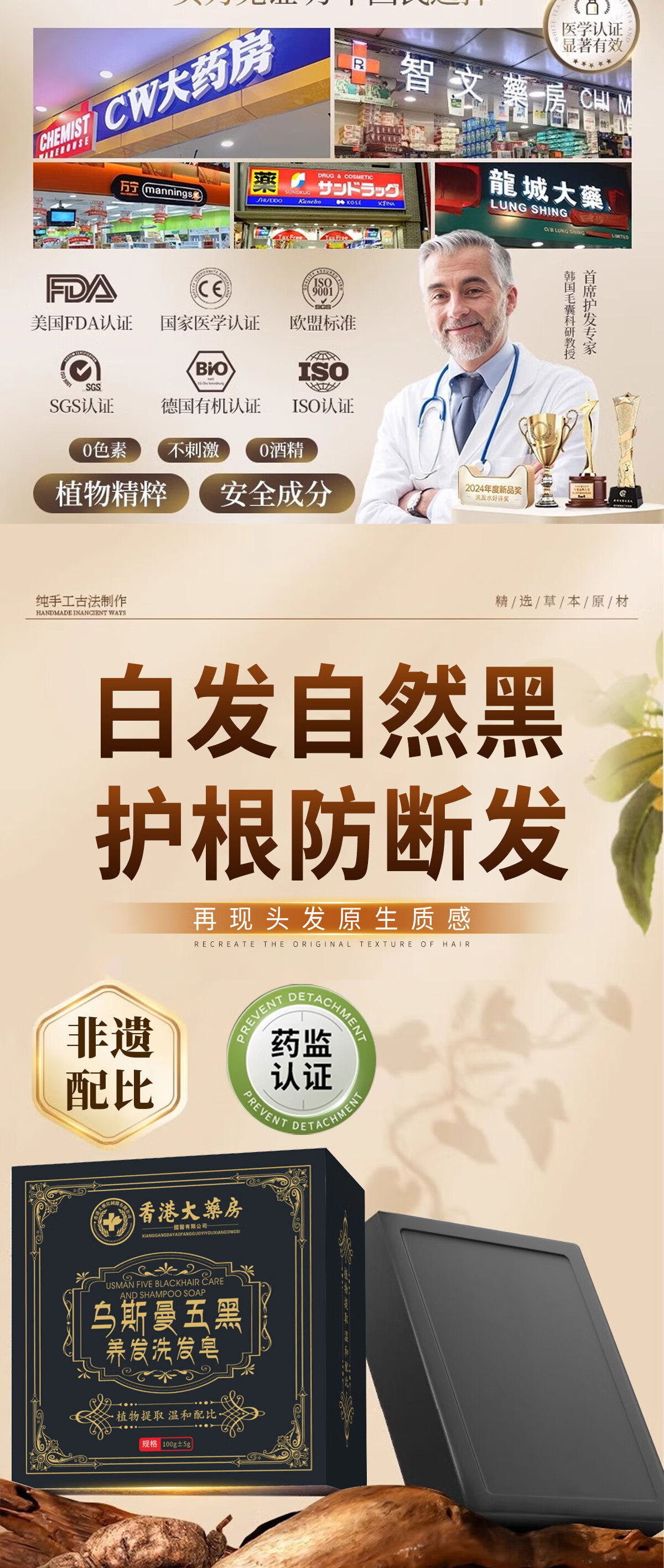 Hong Kong pharmacy, natural black after washing, Xinjiang Usman grass shampoo soap, Polygonum multiflorum, Platycladus arborvitae leaves, traditional Chinese medicine handmade black hair soap, buy 2 get 1 free, for moderate gray hair