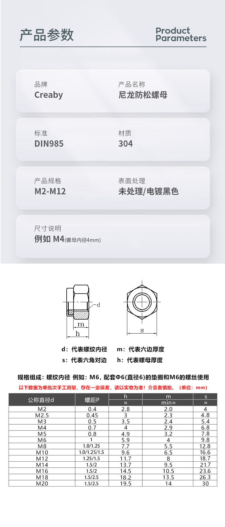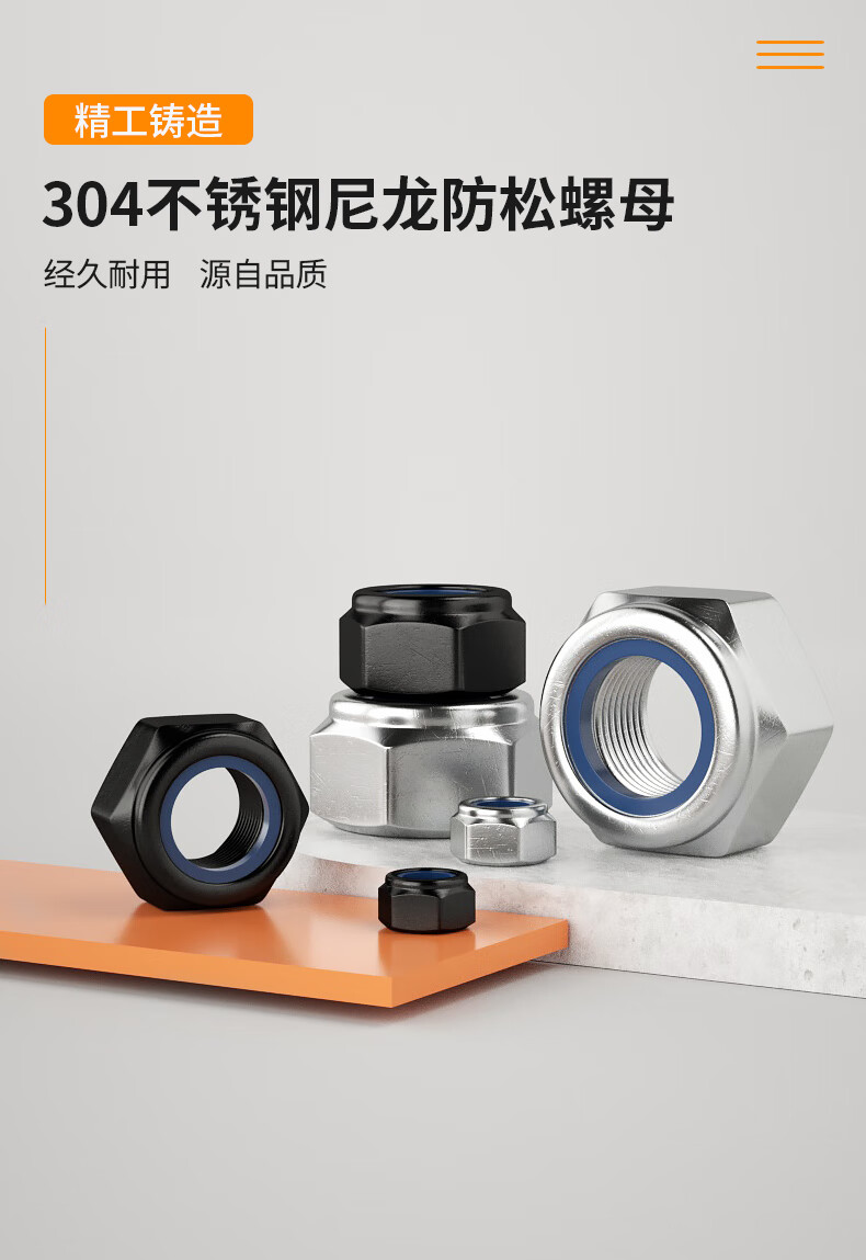 Creaby304 stainless steel hexagonal lock nut 201 lock nut 316 lock nut anti-loosening nut 304 material M8 (10 pieces)