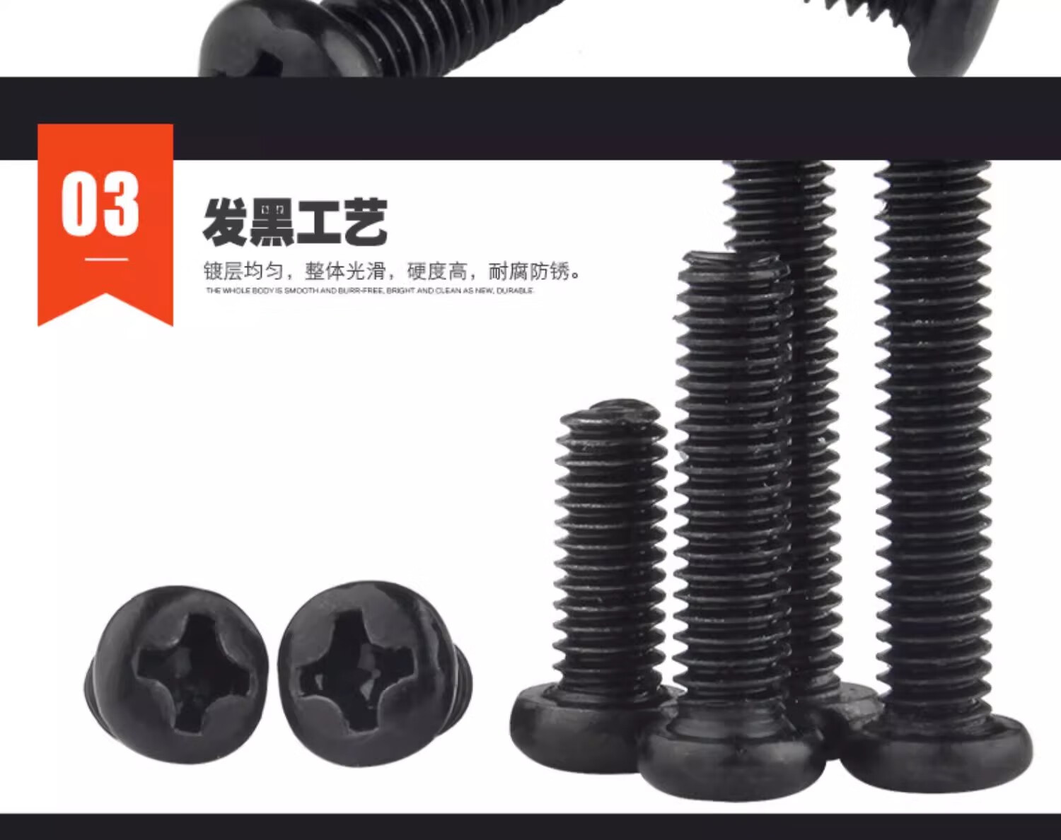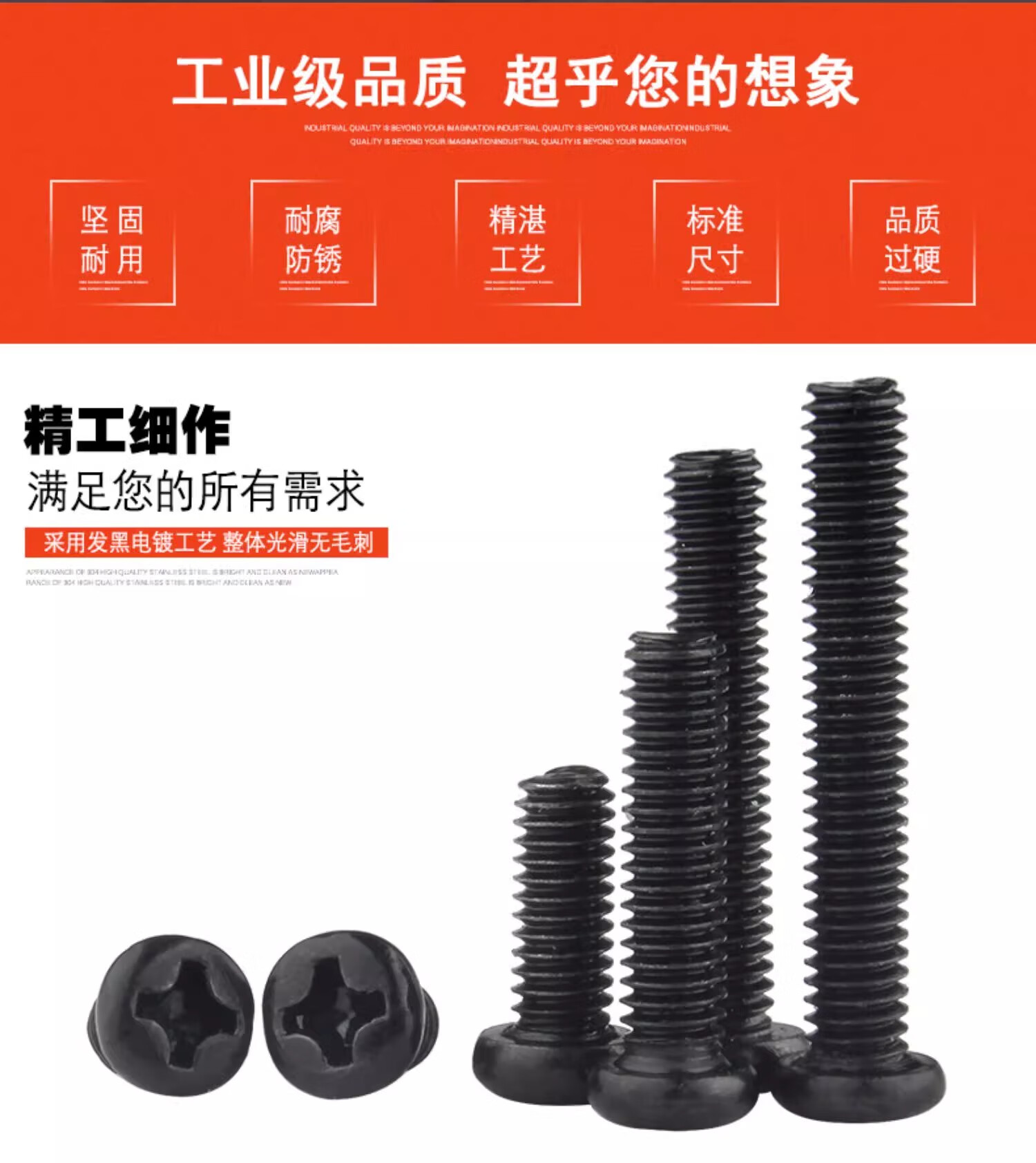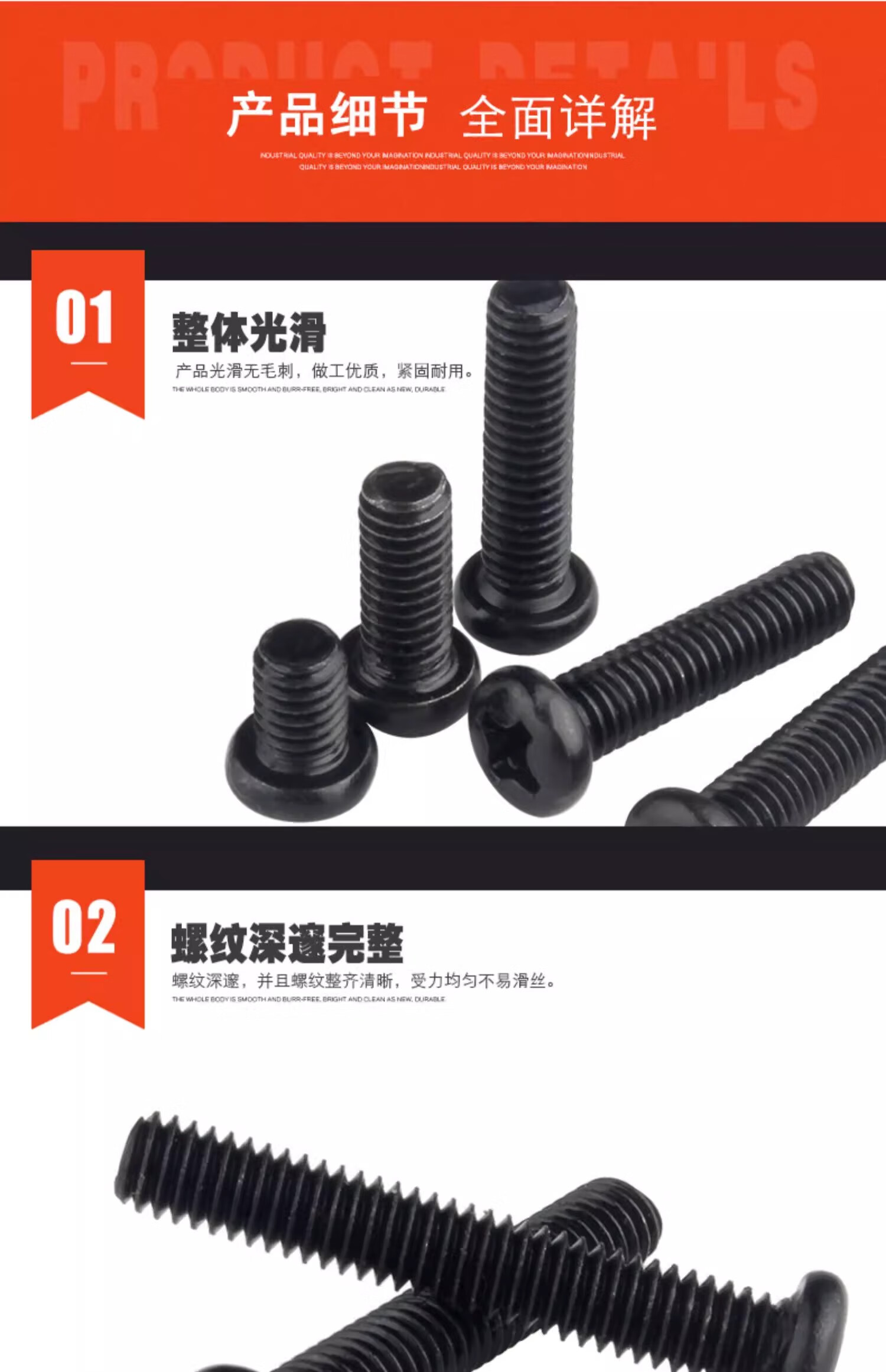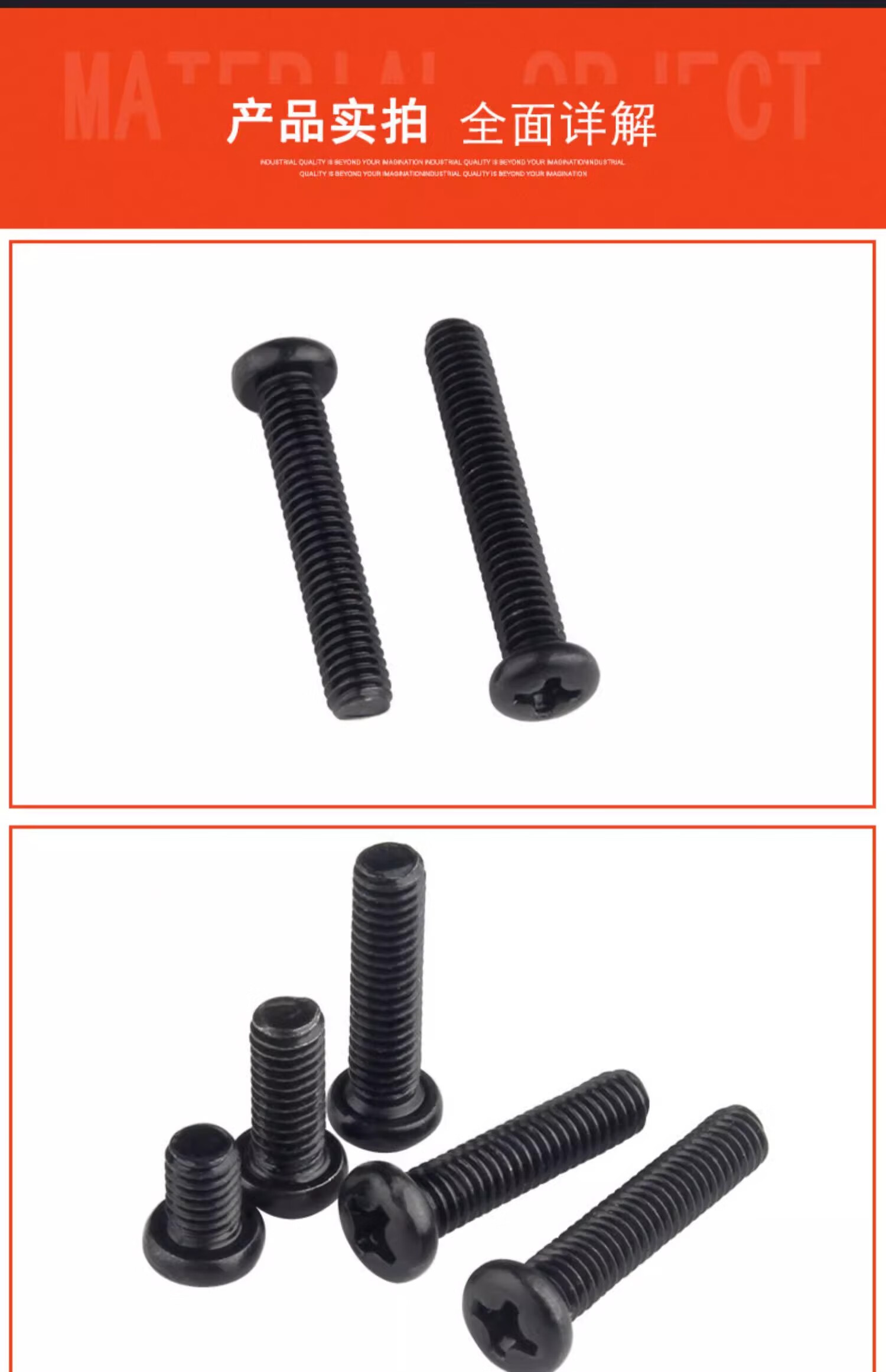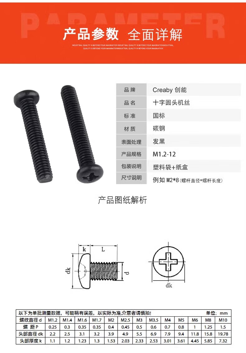 Creaby iron black cross round head screws pan head bolts machine thread screws black machine wire screws M2*10 (500 pieces)