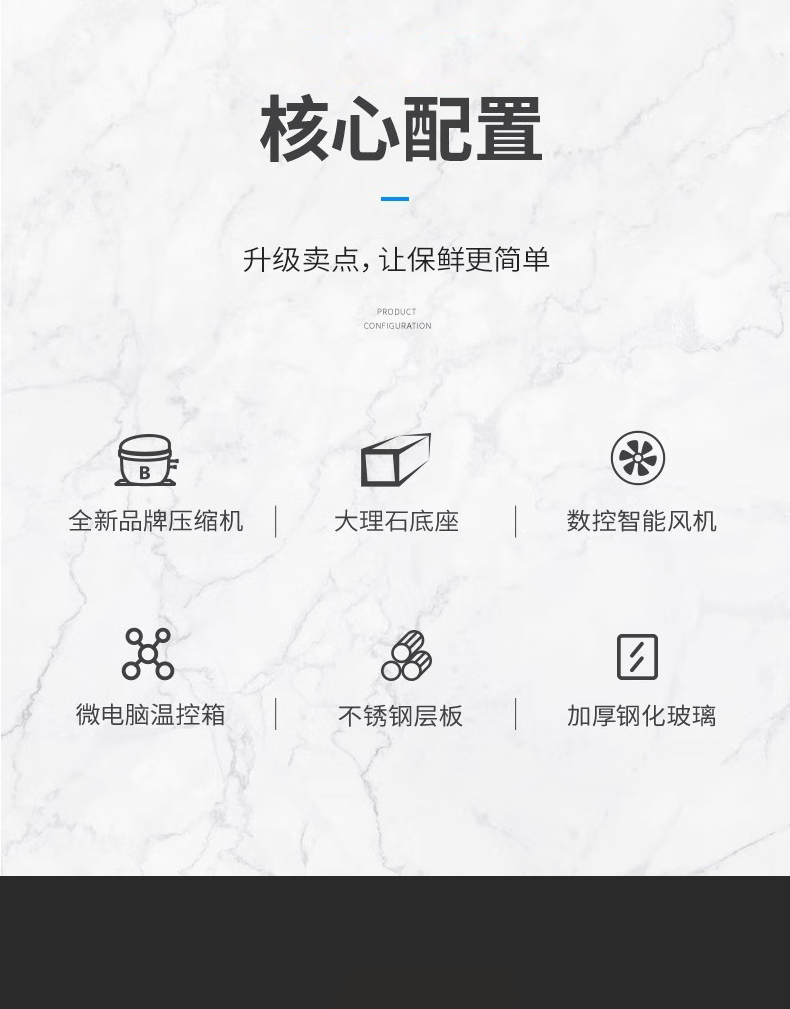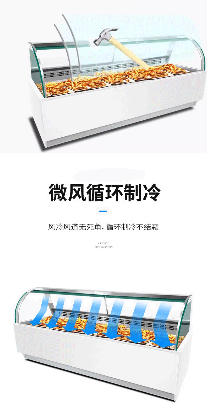 Langwu High-end Marble Style Delicatessen Cabinet Commercial Display Cabinet Air-cooled Duck Neck Chicken Feet Refrigerated Freezer Cold Dish Braised Vegetable Preservation Refrigerator 1.5 Meter Air-cooled Deli Cabinet High-end Marble Style