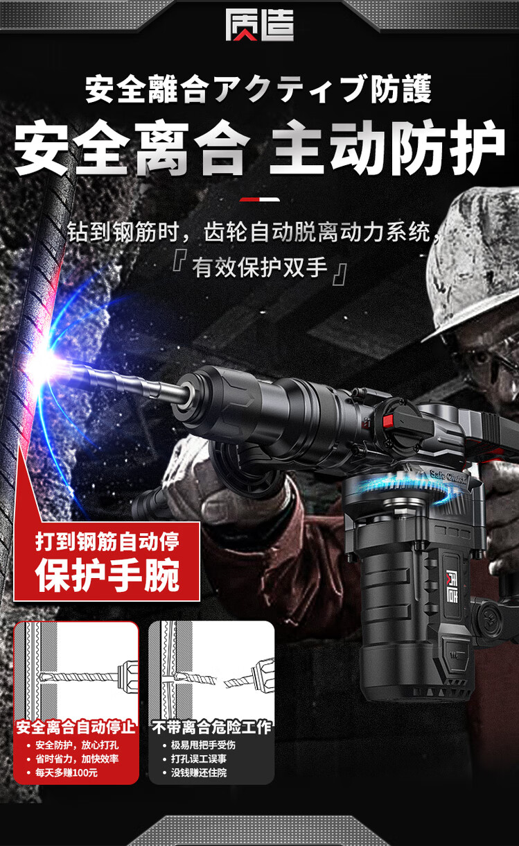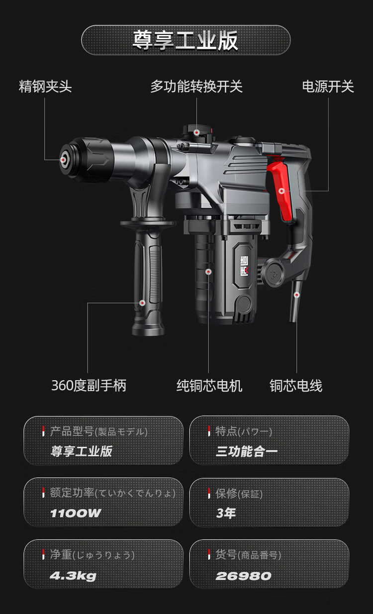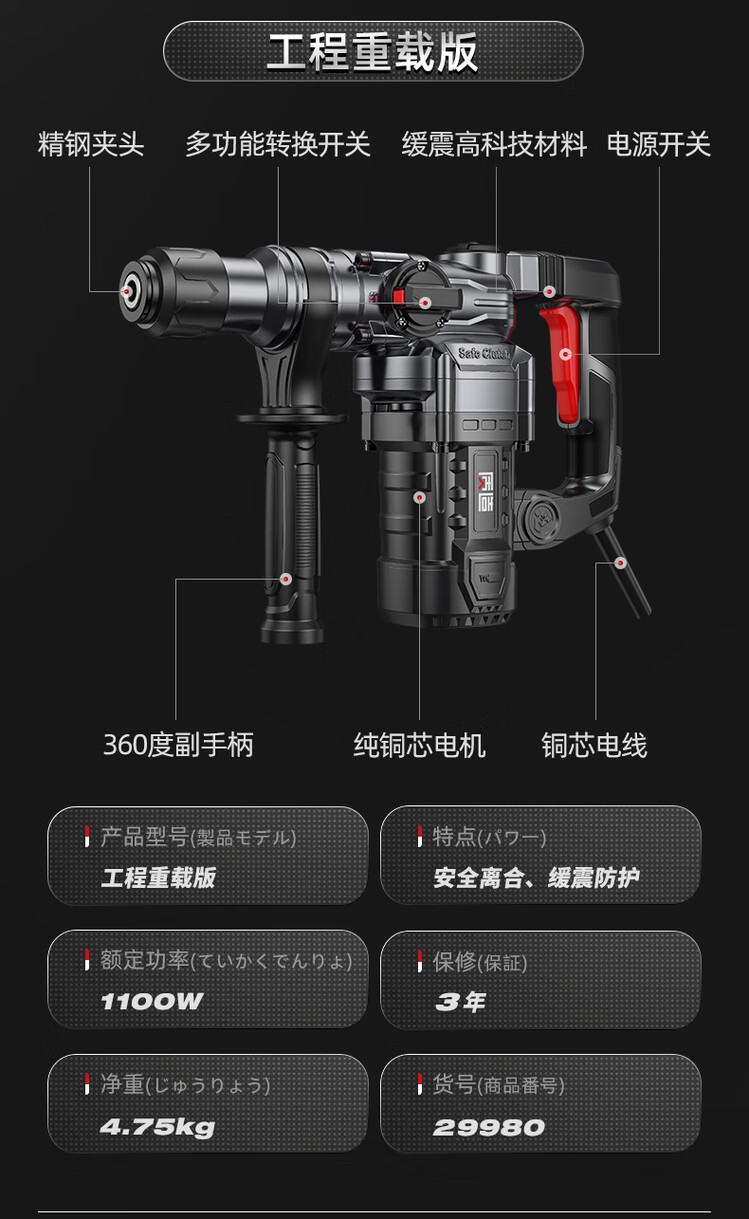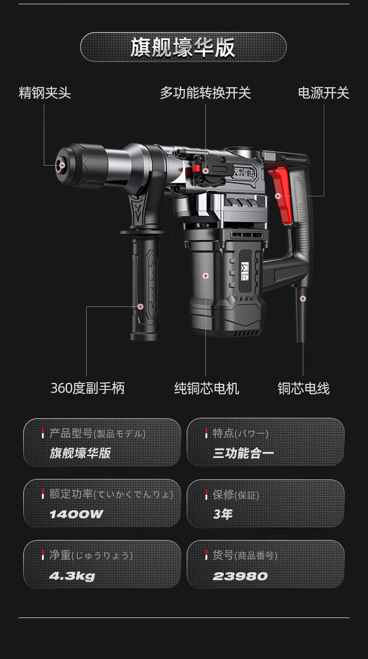 High-quality Japanese electric hammer electric pick, high-power impact drill, industrial concrete power tool, household multi-function electric drill 32980AW flagship Haohua version safety clutch + all copper