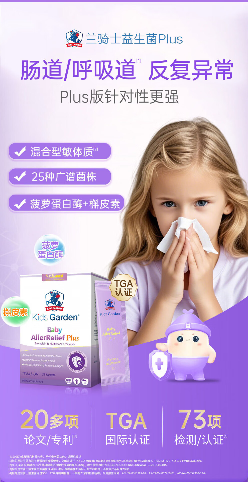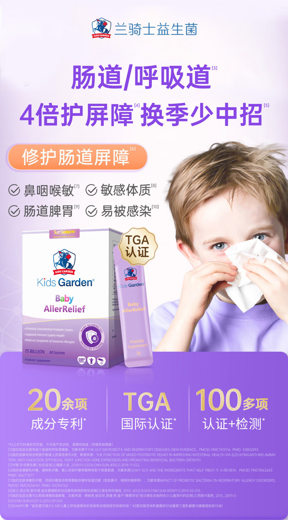 Blue Knight (sun seasons) Good Nose anti-allergic probiotics for children PLUS version Blue Knight infants and young babies soothe the nose and stomach and regulate immunity 3 boxes/strengthen immune barrier Rhinitis probiotics 30 bags*3 boxes