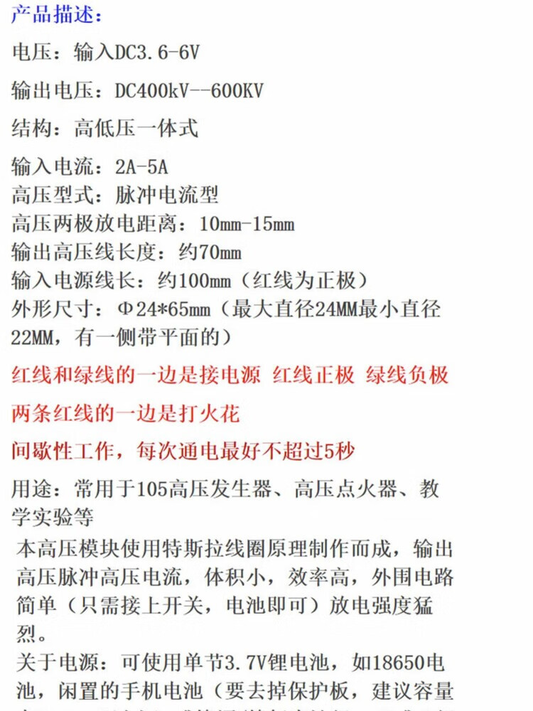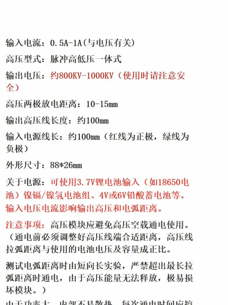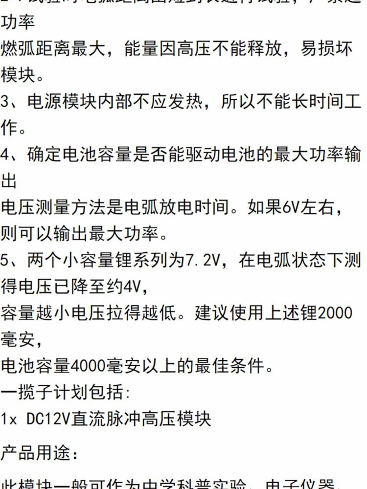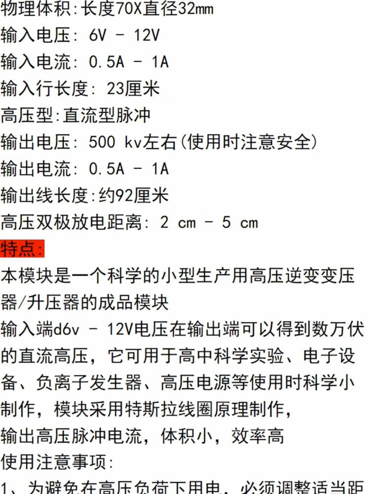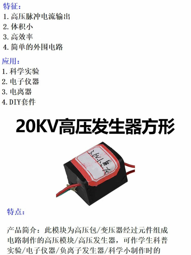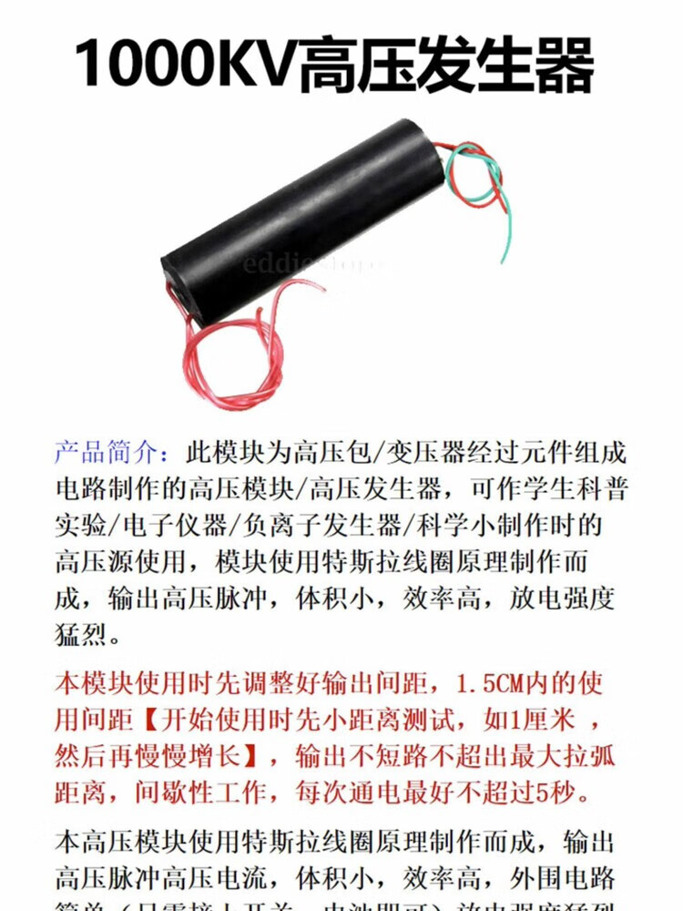 Arc pulse DC 400/1000KV pulse inverter generator ignition coil module high voltage package set 20KV high voltage generator (can be ignited)