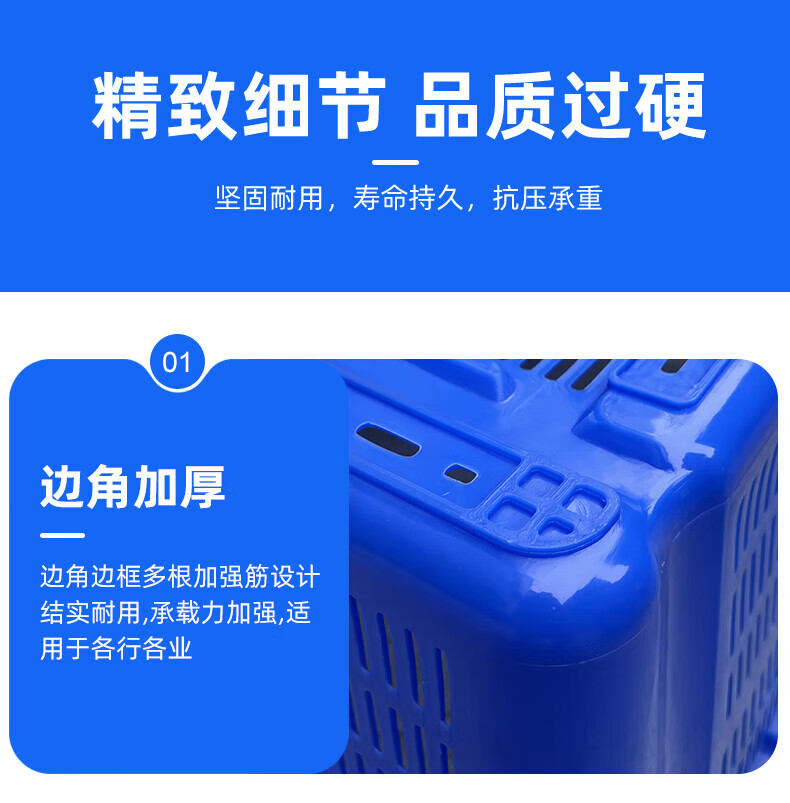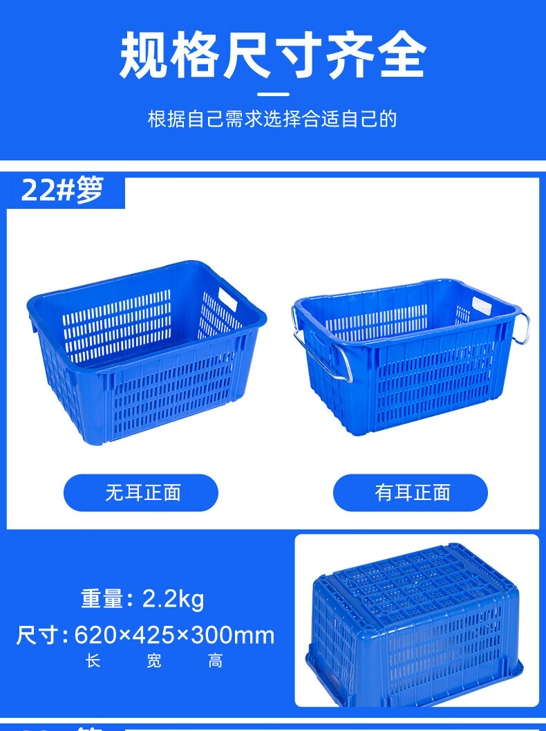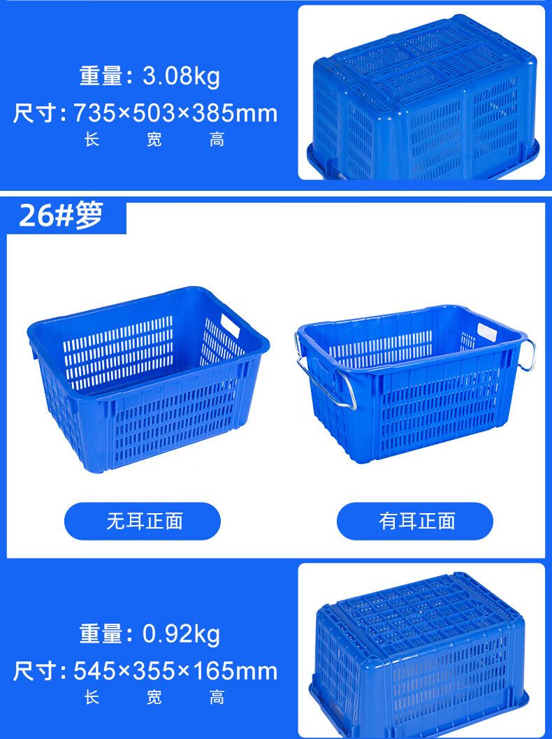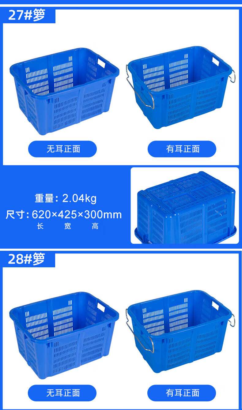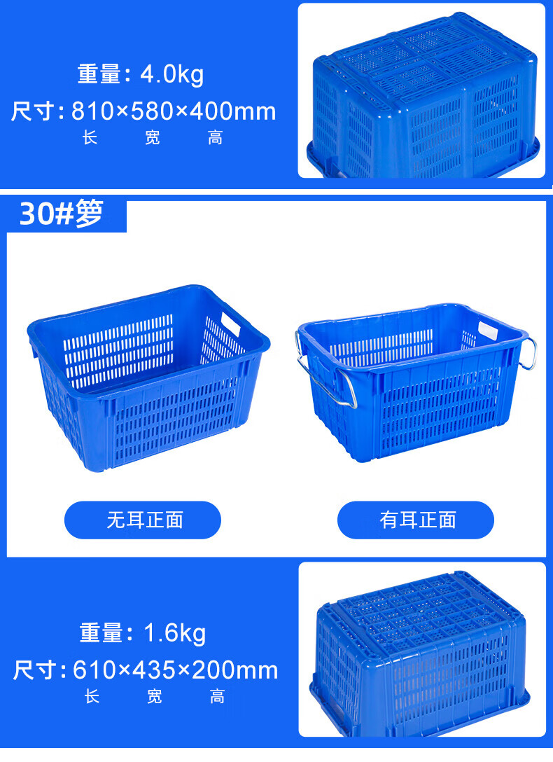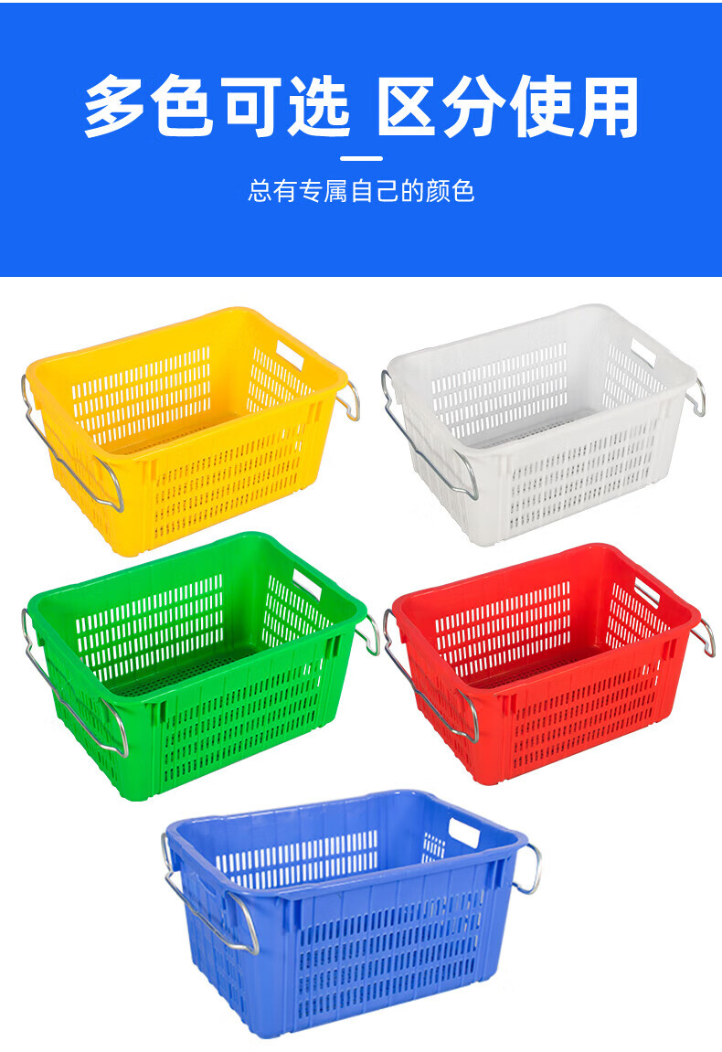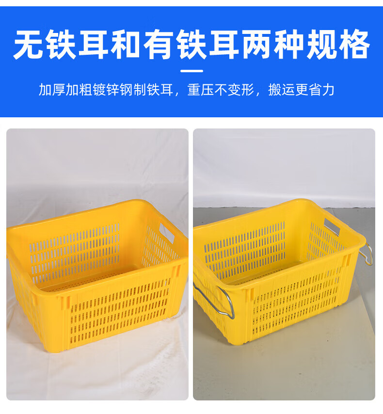 Large rectangular thickened fruit plastic basket vegetable frame vegetable basket storage plastic frame aquatic product turnover basket with iron ears No. 30 yellow 610435200MM1.6KG