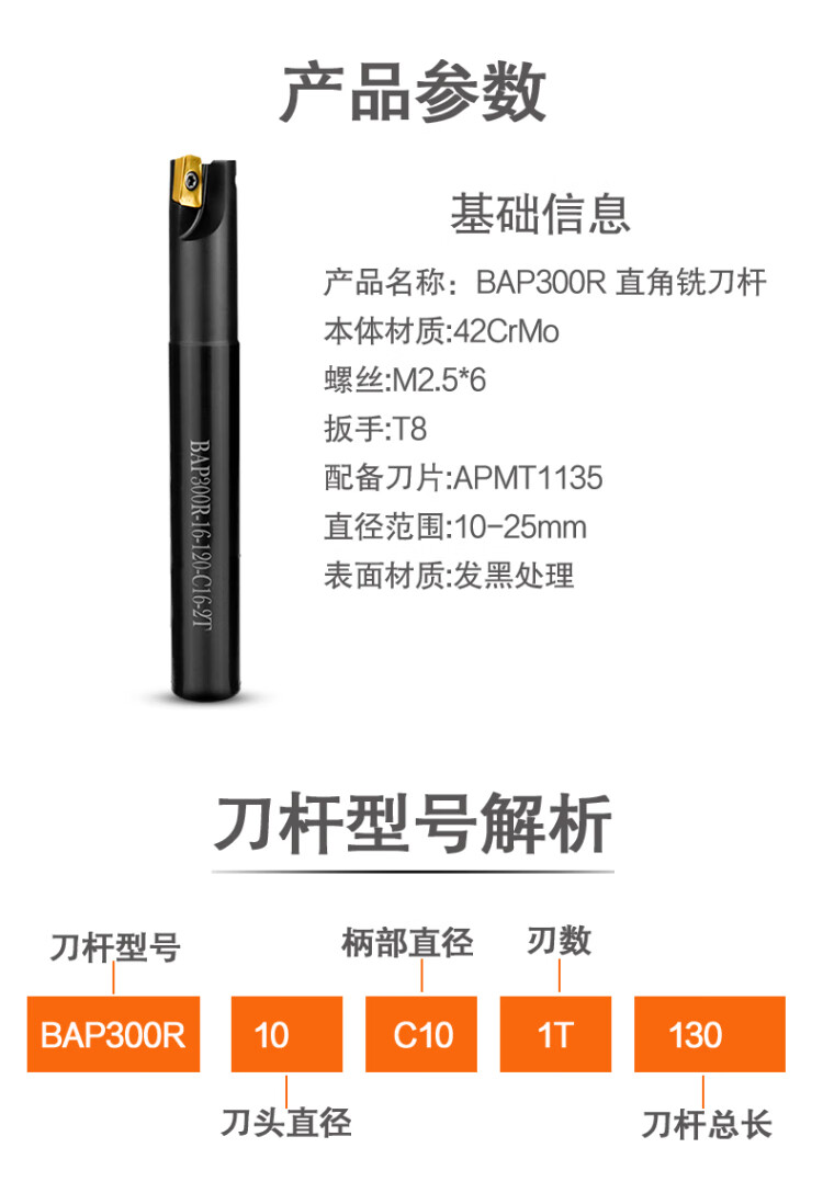 Suitable for 300R milling cutter bar CNC machining center end mill flying cutter bar 1135R0.8 hardened shock-resistant black 300R C16-17-150-2T common black