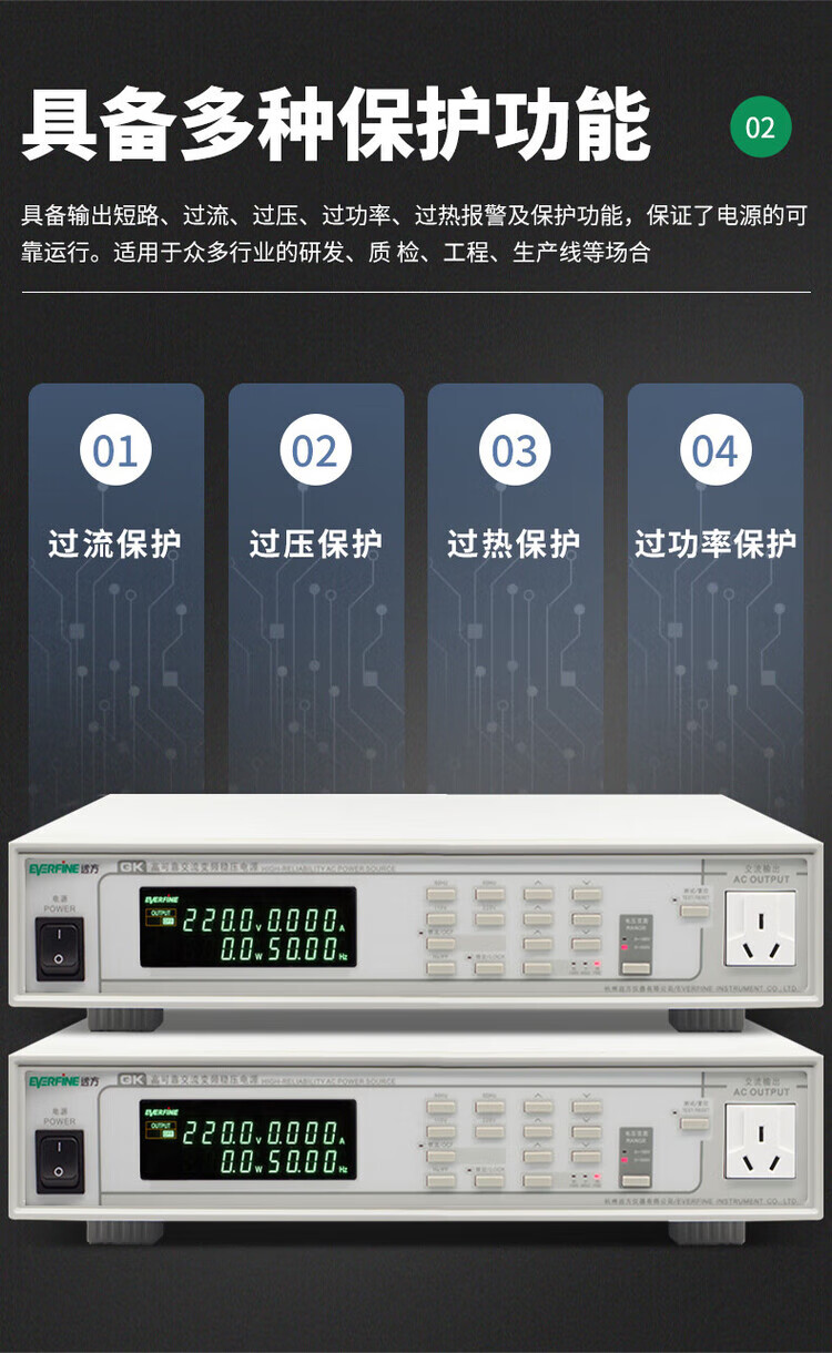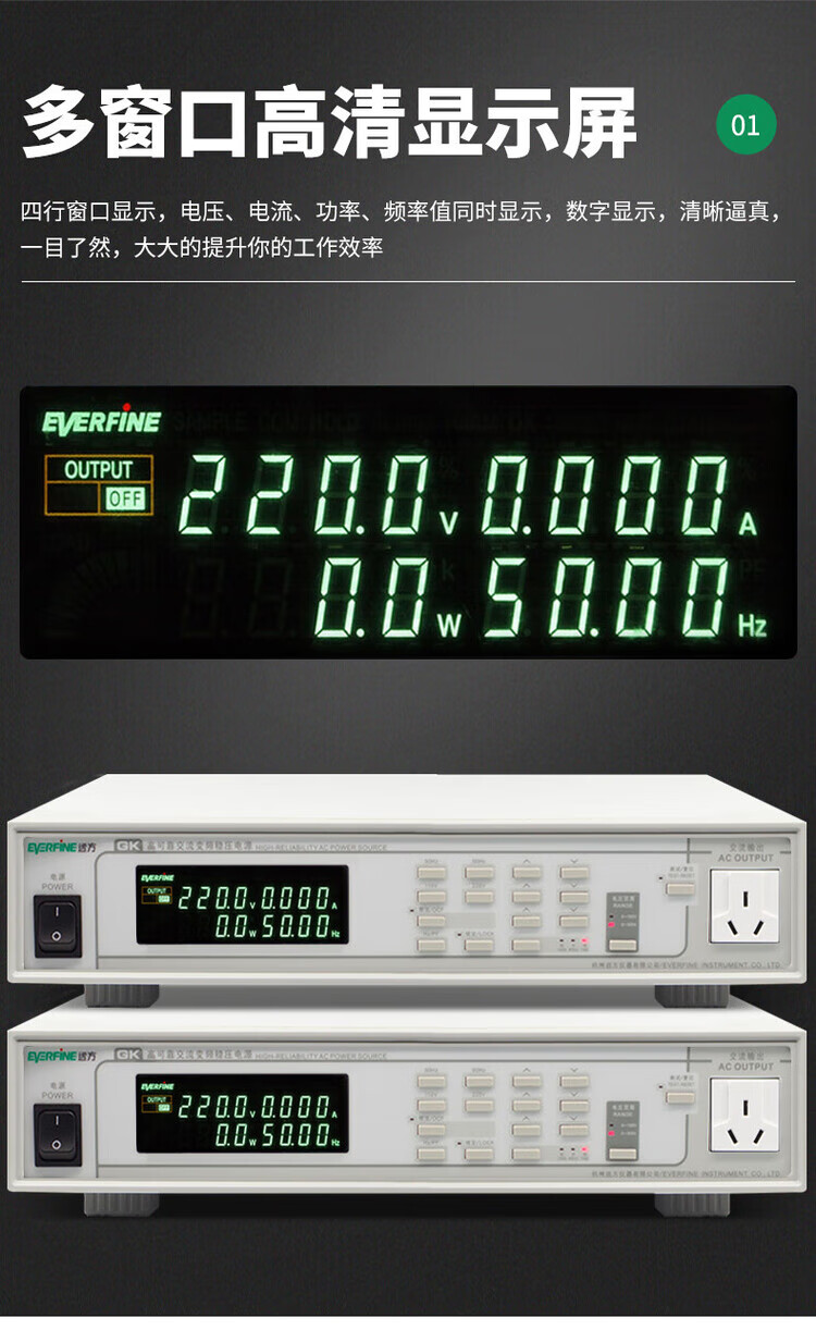 EVERFINE Yuanfang GK10010 AC variable frequency regulated power supply GK10020L display voltage and current regulated power supply GK10010 (1KVA)