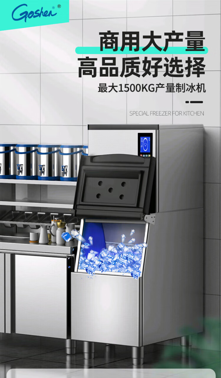 Goshen ice making machine for commercial use, milk tea shop cube refrigerator, cost-effective ice making machine, fully automatic large ice making machine, bar restaurant KTV special split ice making machine for commercial use, entrepreneurial model | 144 ice trays | daily output 210KG