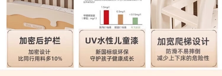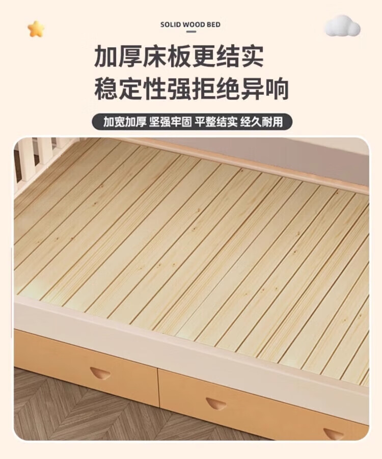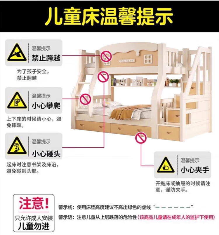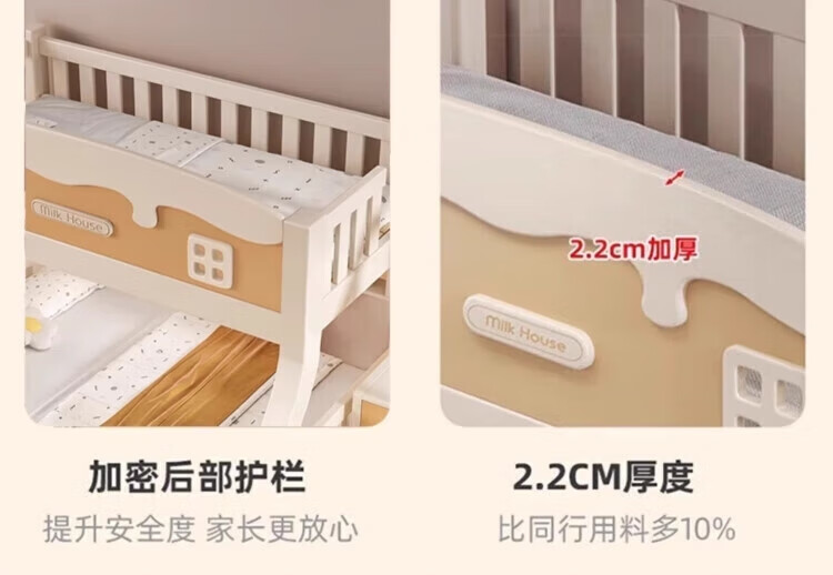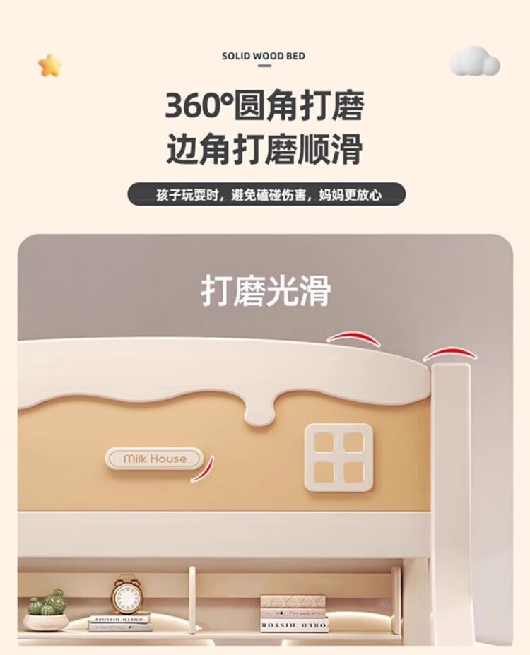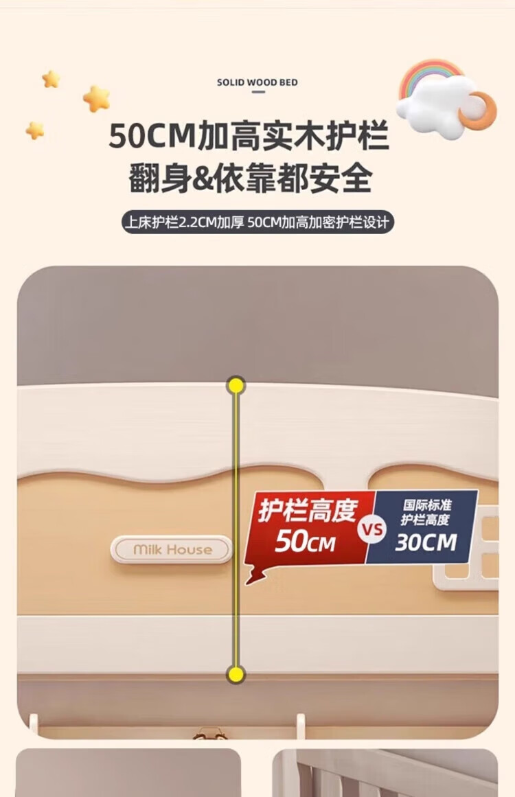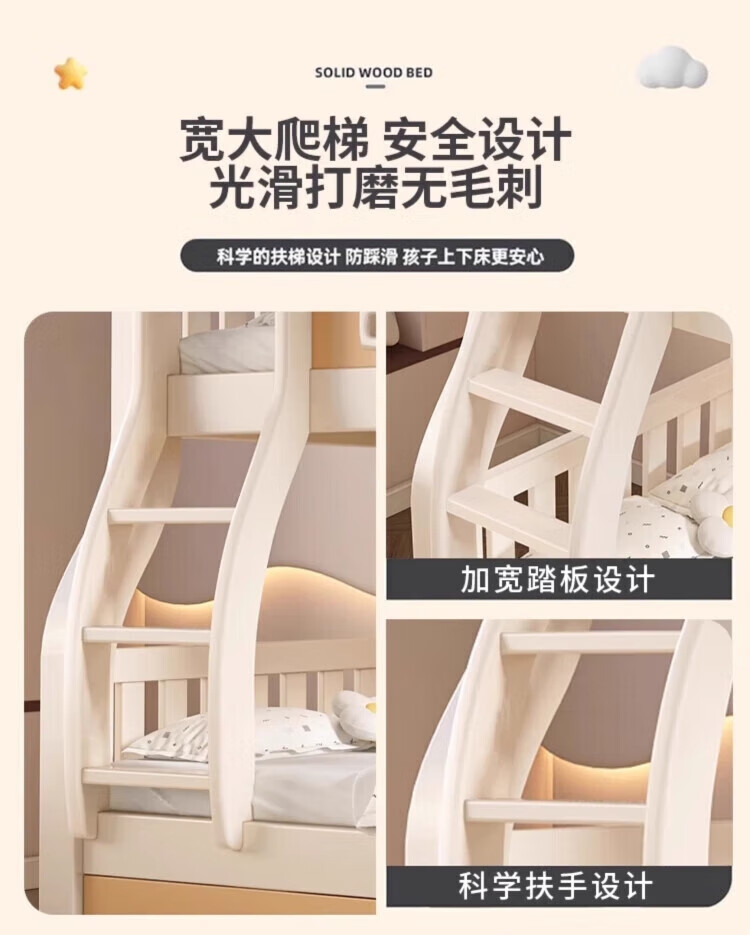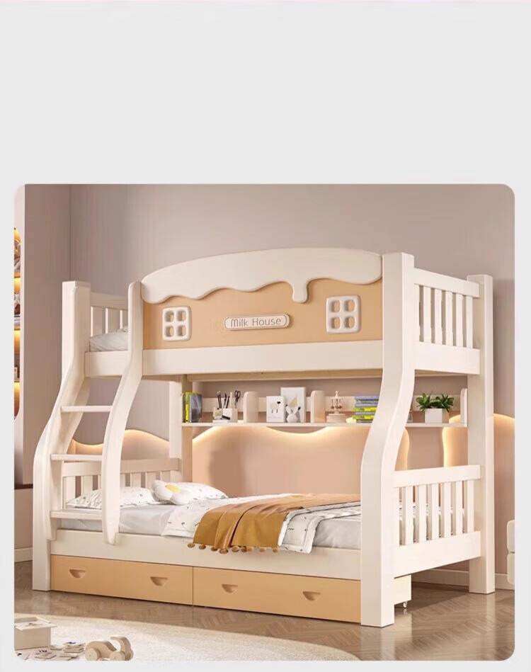 Leiyang all solid wood upper and lower bed, cream style cartoon bunk bed, small apartment multi-functional wooden bed double solid wood high and low bed, ladder cabinet upper 115 lower 135 bookshelf drawer mattress * 2 package installation