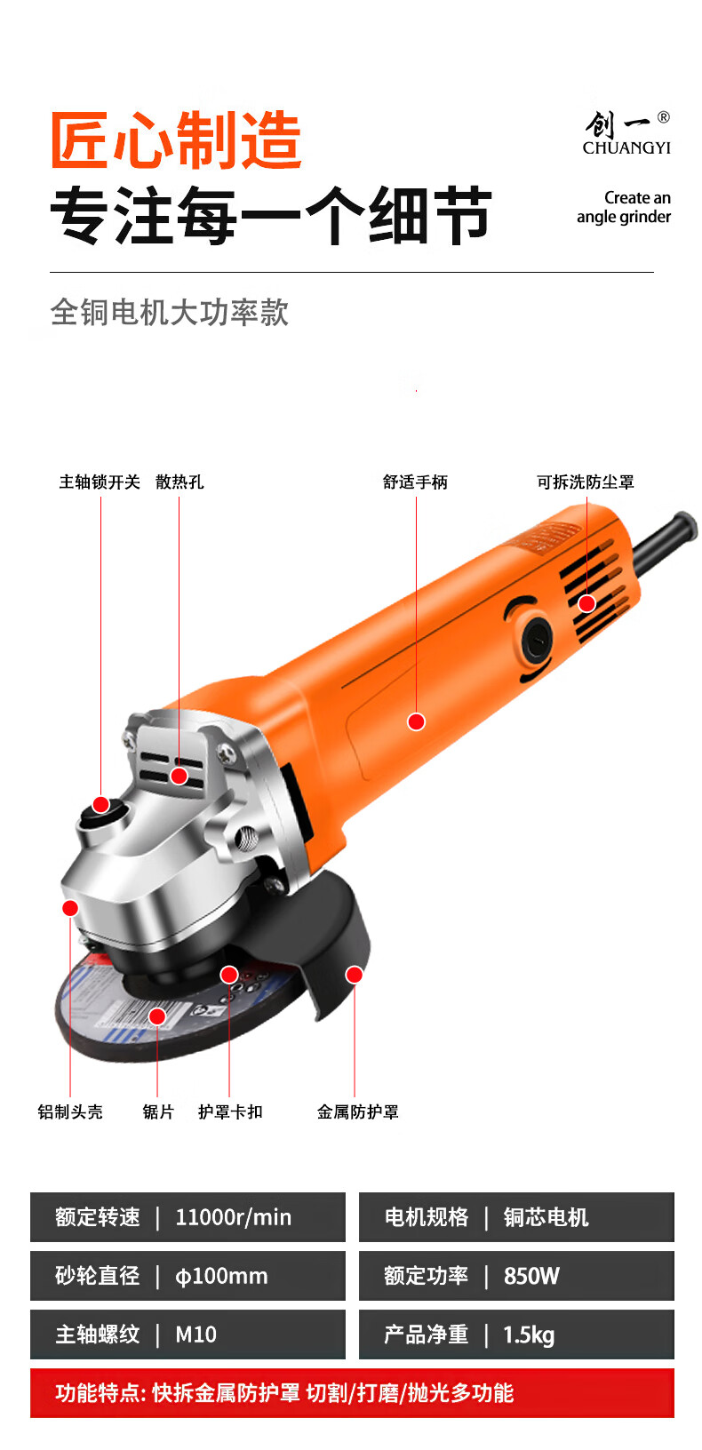 Chuangyi angle grinder cutting machine hand grinder grinder hand grinder grinder grinder household standard model