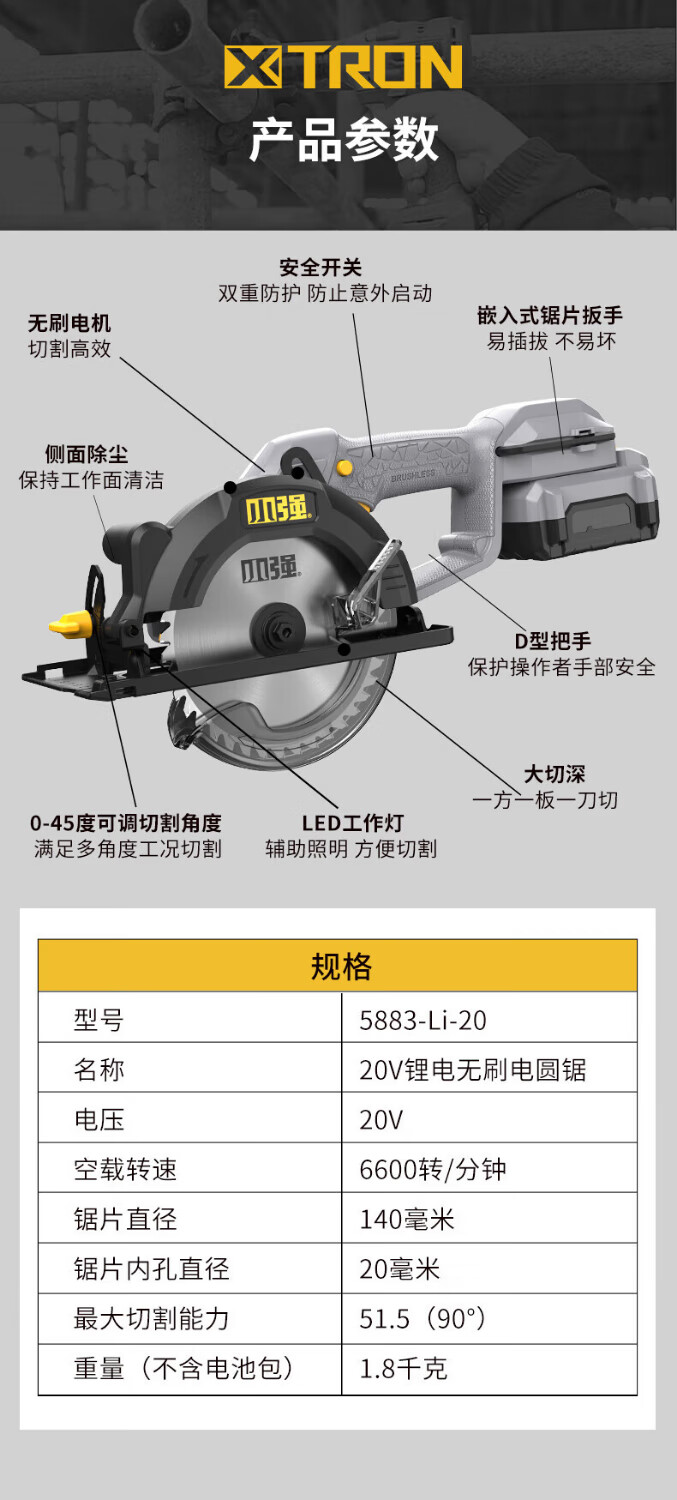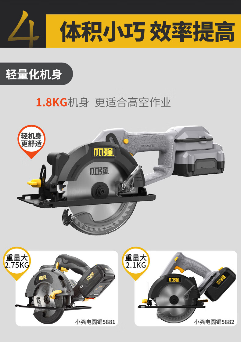 Xiaoqiang 5883 lithium electric saw 20v rechargeable brushless woodworking portable saw electric circular saw portable cutting machine power tool 5883-6.0 single battery package