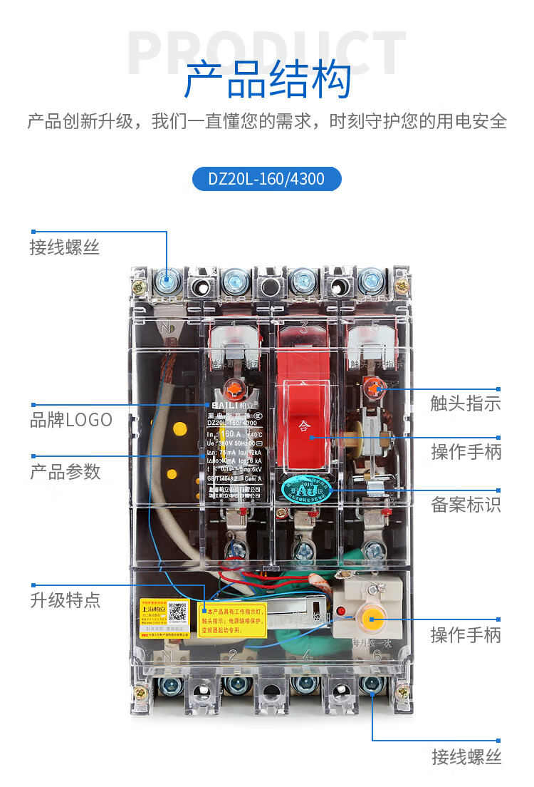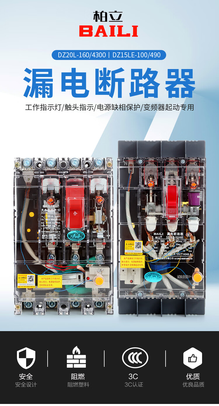Transparent leakage circuit breaker DZ20LE160A250A400A630A tower crane anti-interference variable frequency leakage protector 100A 3P+N