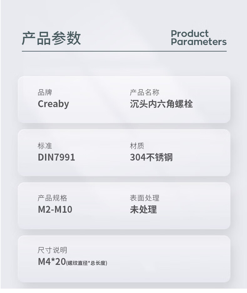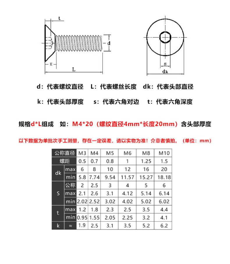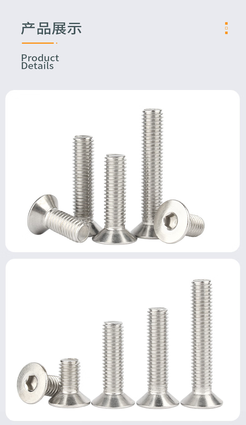 Creaby countersunk head hexagon socket screws 304 stainless steel flat head screws flat cup bolts screws DIN799 M4x8 (50 pieces)
