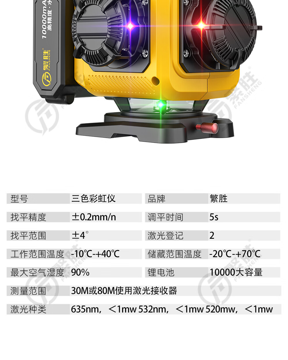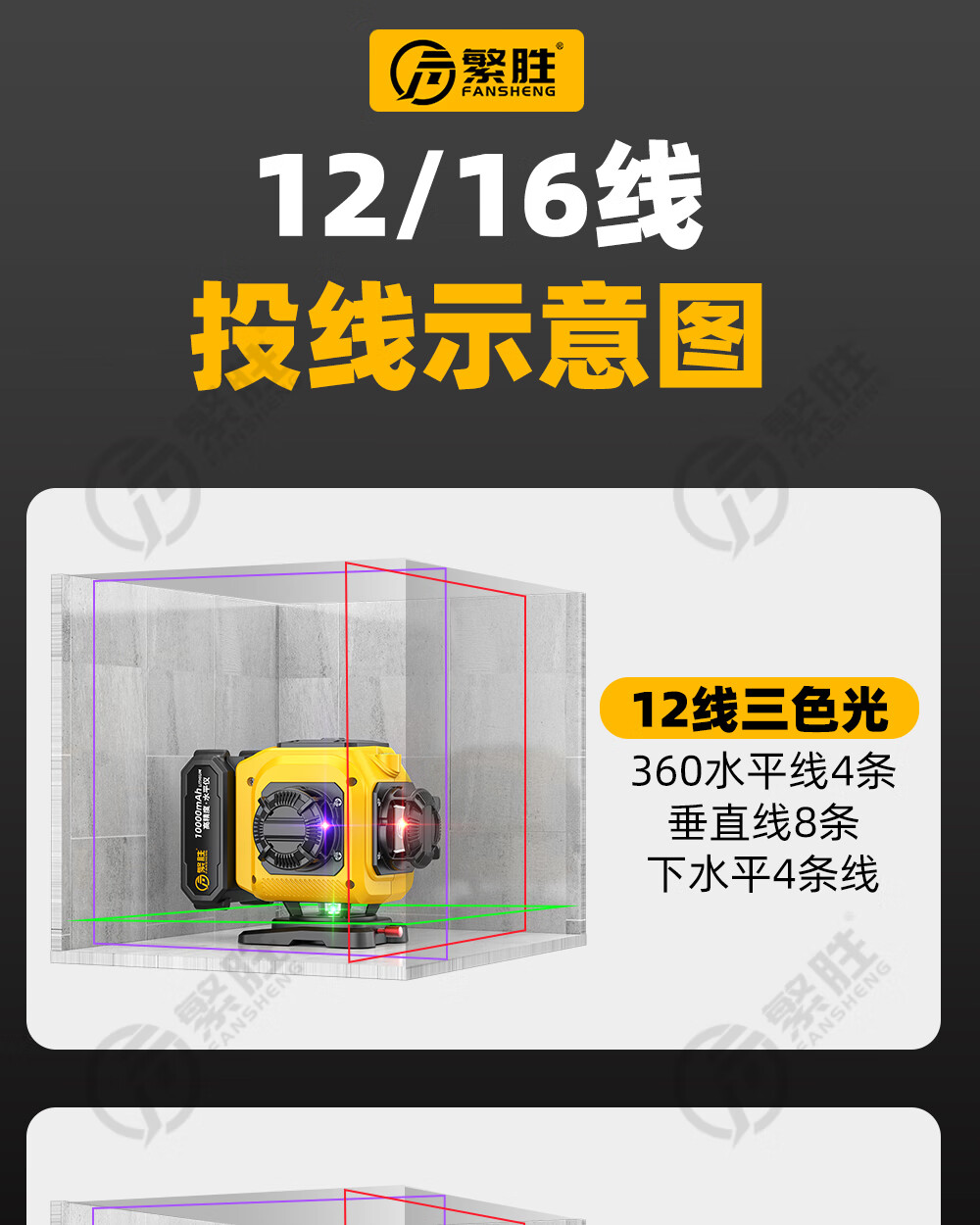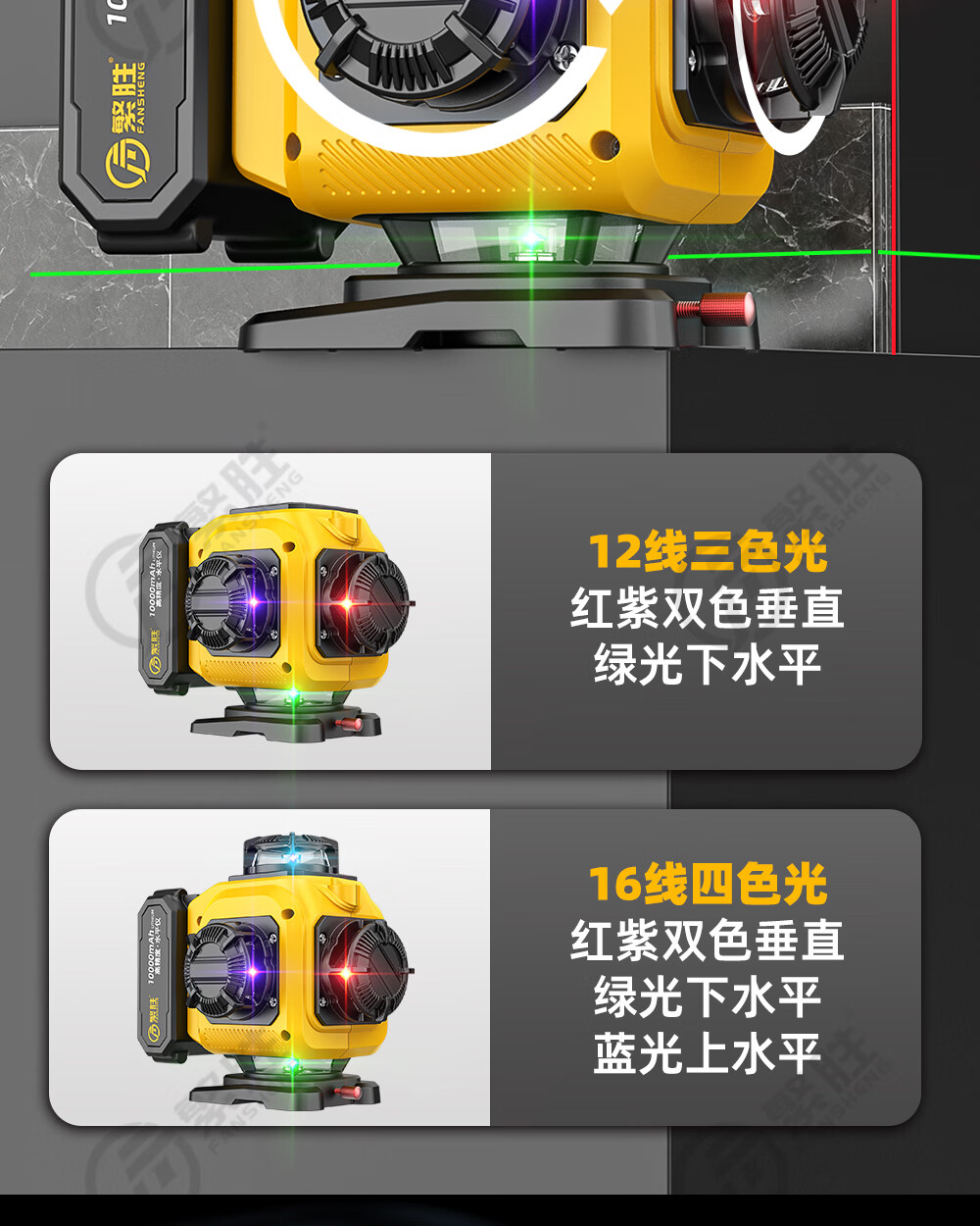 繁胜繁胜12线彩虹机紫光绿光红光三色水平仪高精度强光红外线贴地贴墙 三色机12线(红绿蓝)高配