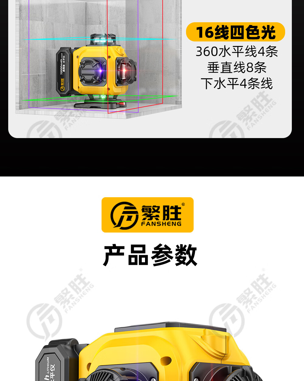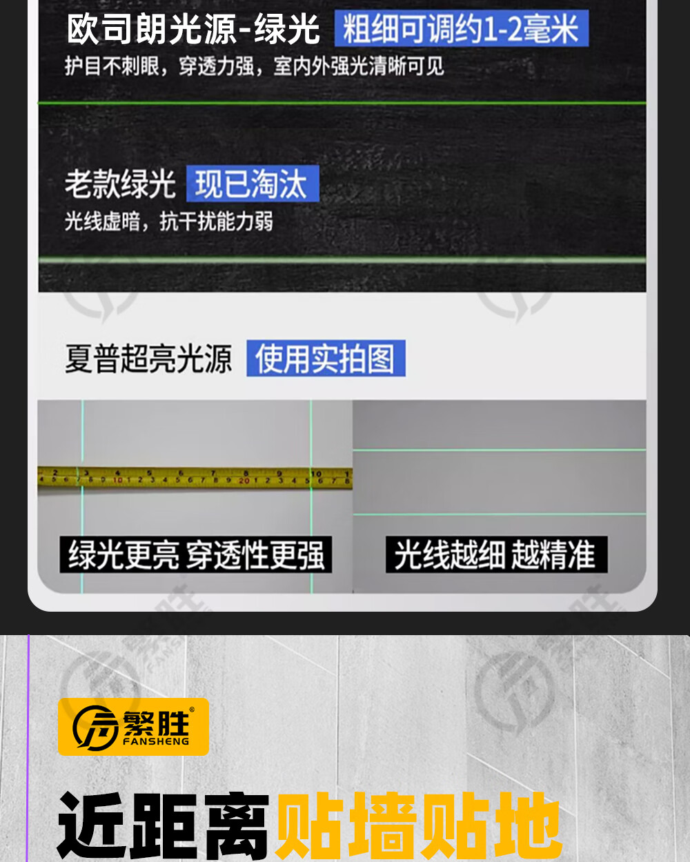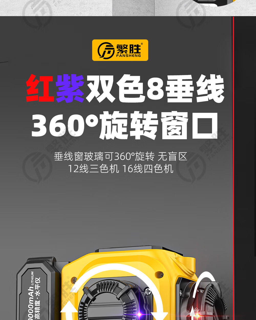 繁胜繁胜12线彩虹机紫光绿光红光三色水平仪高精度强光红外线贴地贴墙 三色机12线(红绿蓝)高配