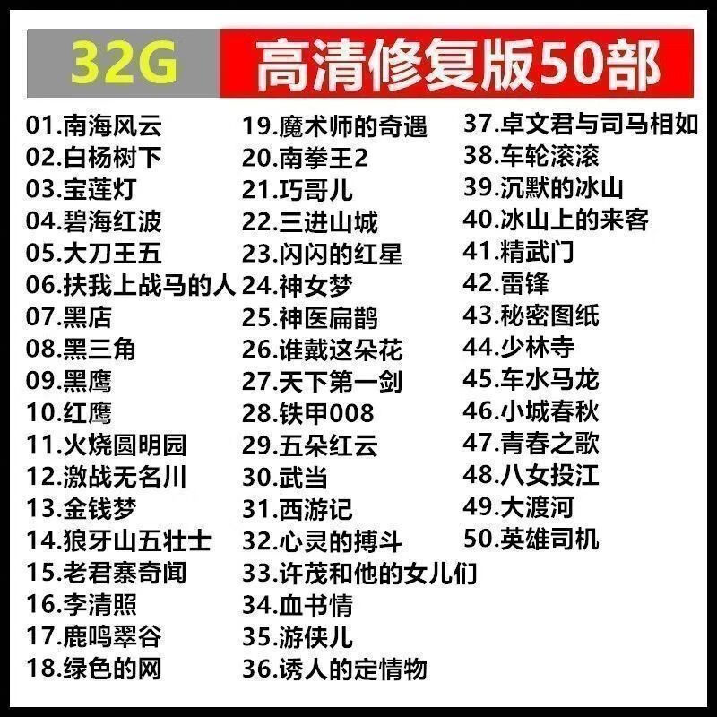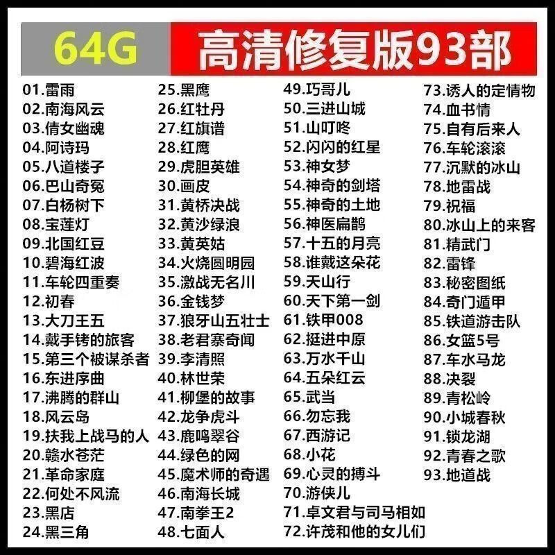 Classic domestic old movie USB flash drive 128G nostalgic high-definition color restored movie viewing grid car 64G USB flash drive 128G restored version of 178 old movies