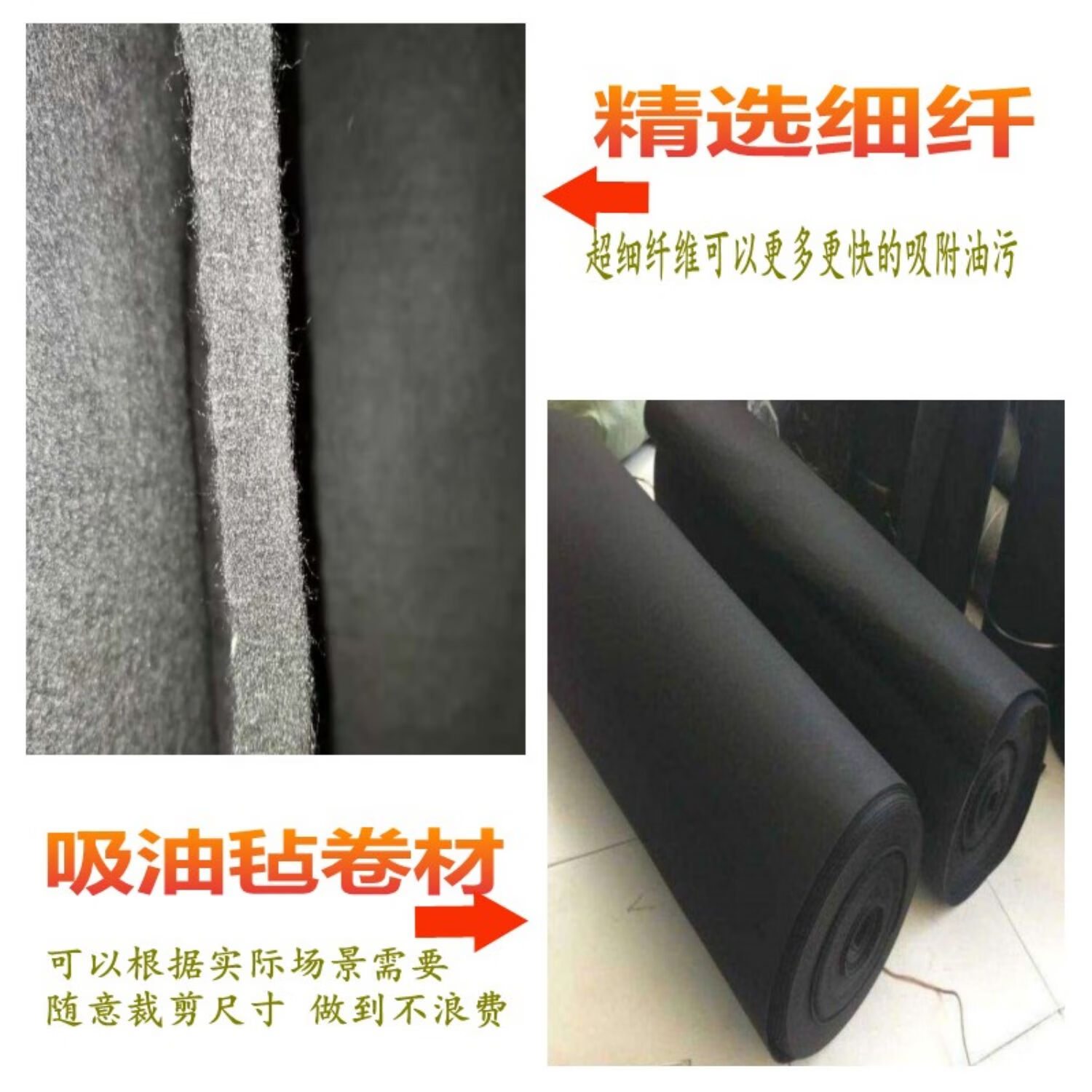 Black oil-absorbing felt industrial felt sound insulation machine oil leakage marine gas station oil depot floor oil-absorbing felt oil-absorbing blanket 1*2m*5mm thick
