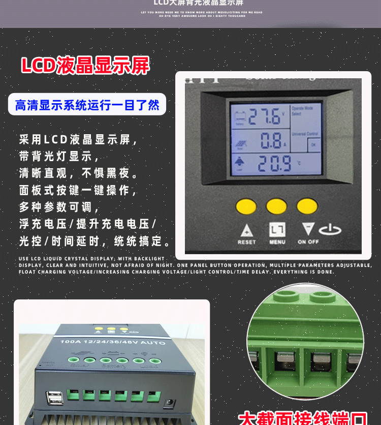 MPPT solar controller 60A80A100A fully automatic charge and discharge universal 12v24V36V48V with USB upgrade 12V24V36V48V60A