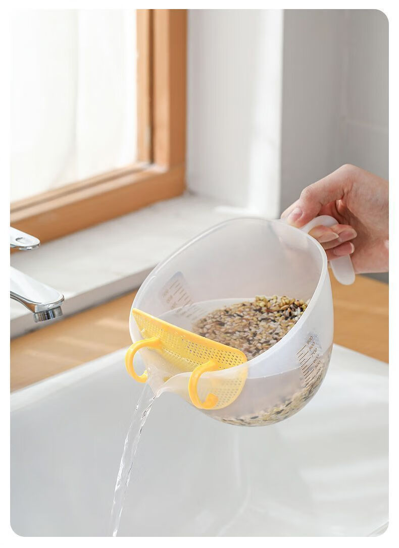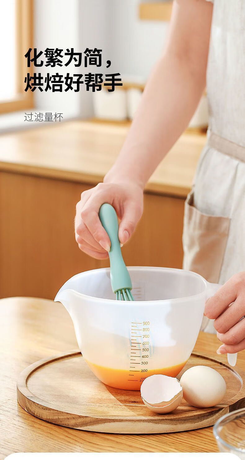 Filter measuring cup food grade rice cleaning artifact multi-functional filter baffle egg liquid steamed egg slag separator large capacity 1L measuring cup 1 / send filter plate