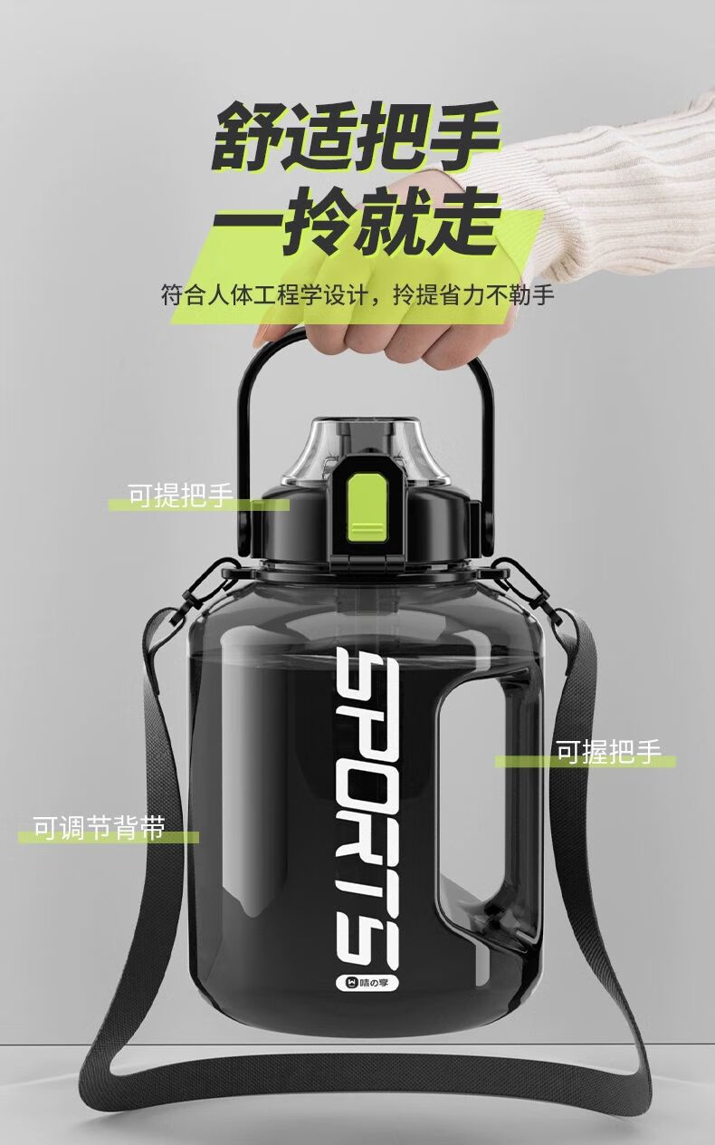 Wei Zhixiang hot-selling Internet celebrity Dundun bucket water cup large capacity summer sports water bottle fitness ton bucket ton space cup big belly cup export-grade PC+straw+handle+strap 3L food-grade PC material