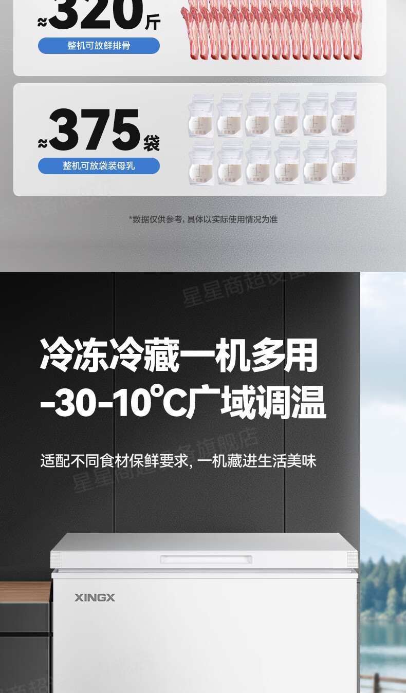 Xingx (XINGX) Xingxing Freezer Household Small 150/200/305 L L Refrigerated Freezer Dual-Purpose Fresh Cabinet Refrigerator First-Class Energy Efficiency Frost Reducing Single Door Freezer Official Flagship Store Basic Model -30 Cryogenic丨Anti-corrosion Liner丨150L 150L