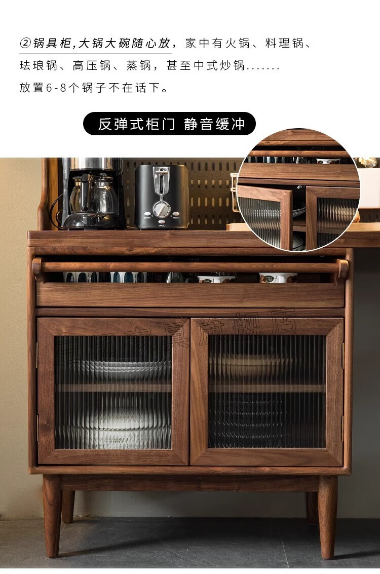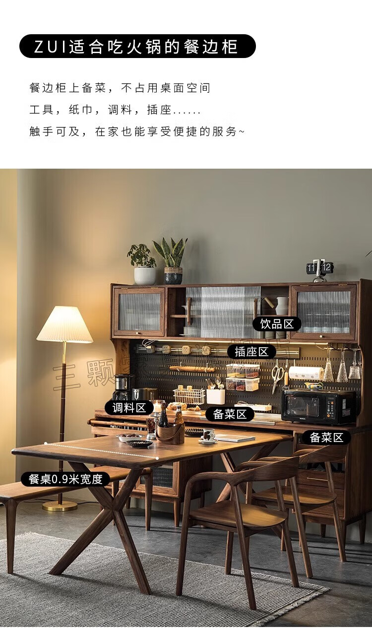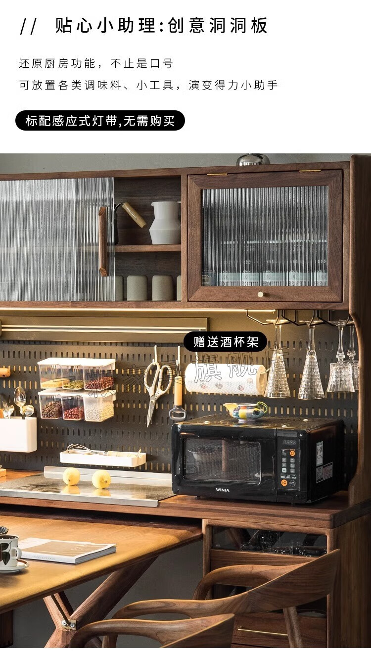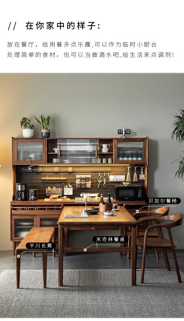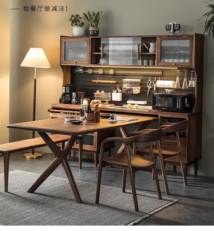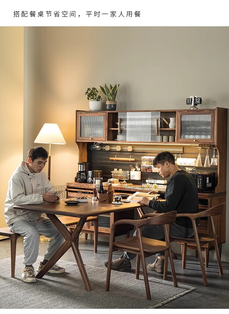 Three furniture solid wood sideboard and dining table integrated North American black walnut high cabinet with built-in table wine cabinet cabinet multi-function 210cm sideboard (North American black walnut)