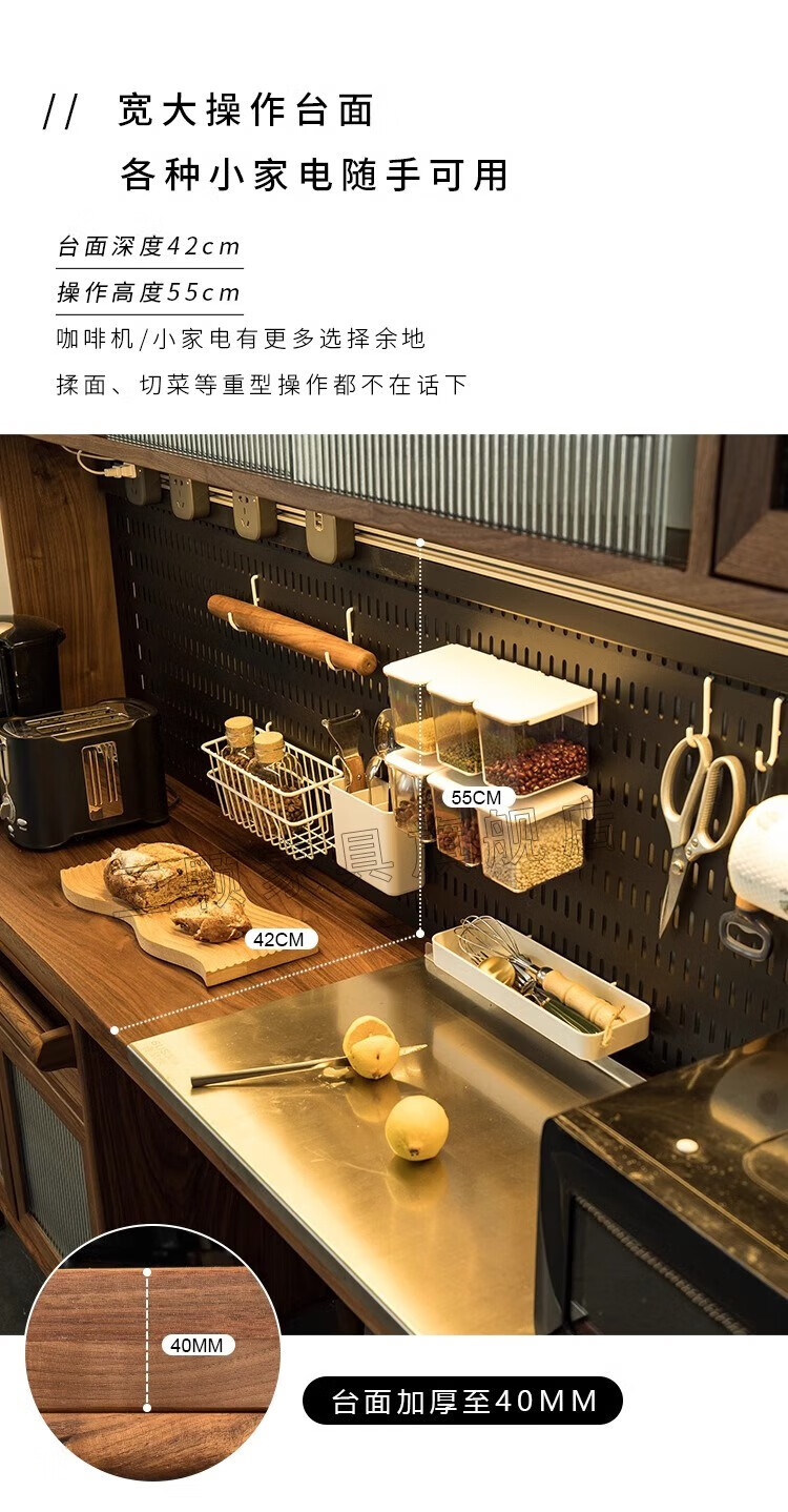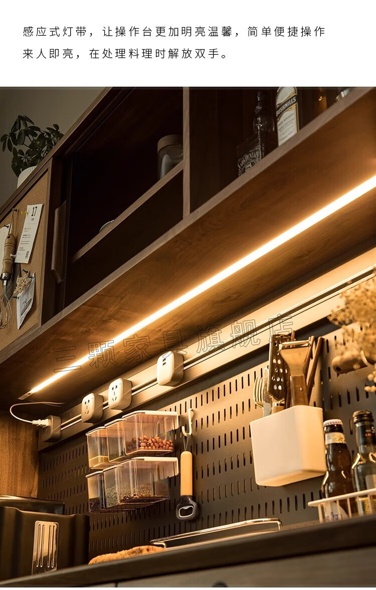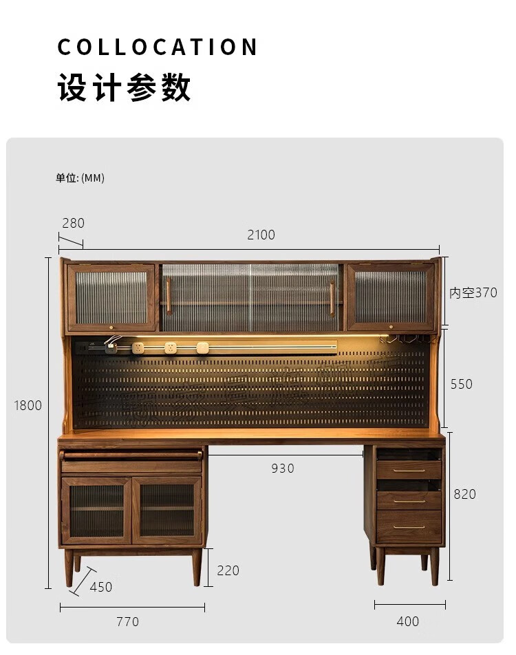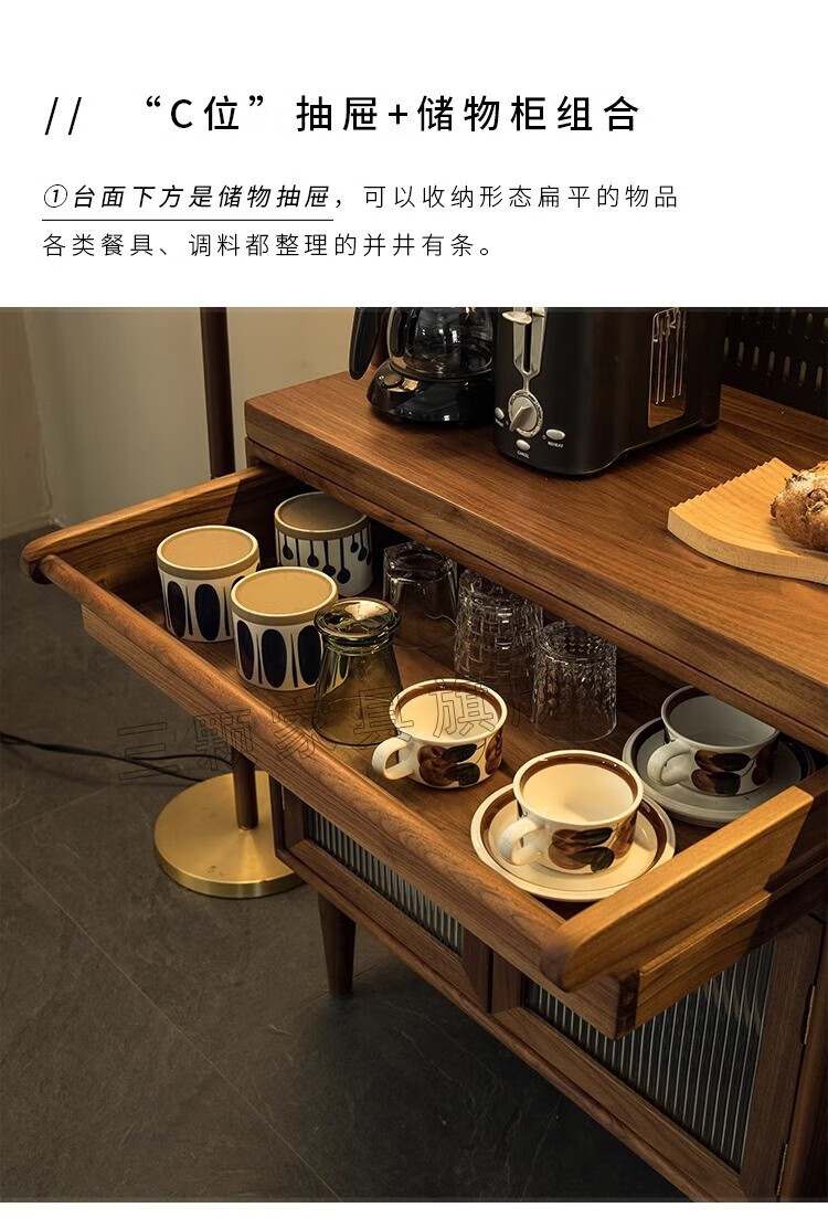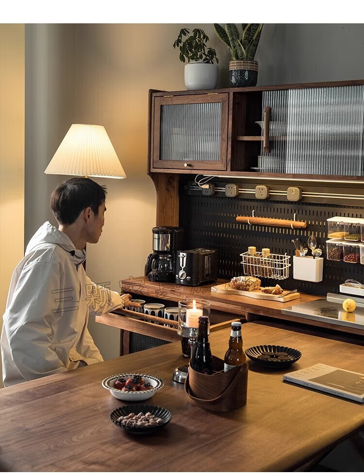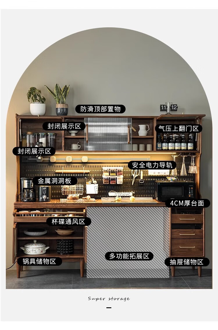 Three furniture solid wood sideboard and dining table integrated North American black walnut high cabinet with built-in table wine cabinet cabinet multi-function 210cm sideboard (North American black walnut)