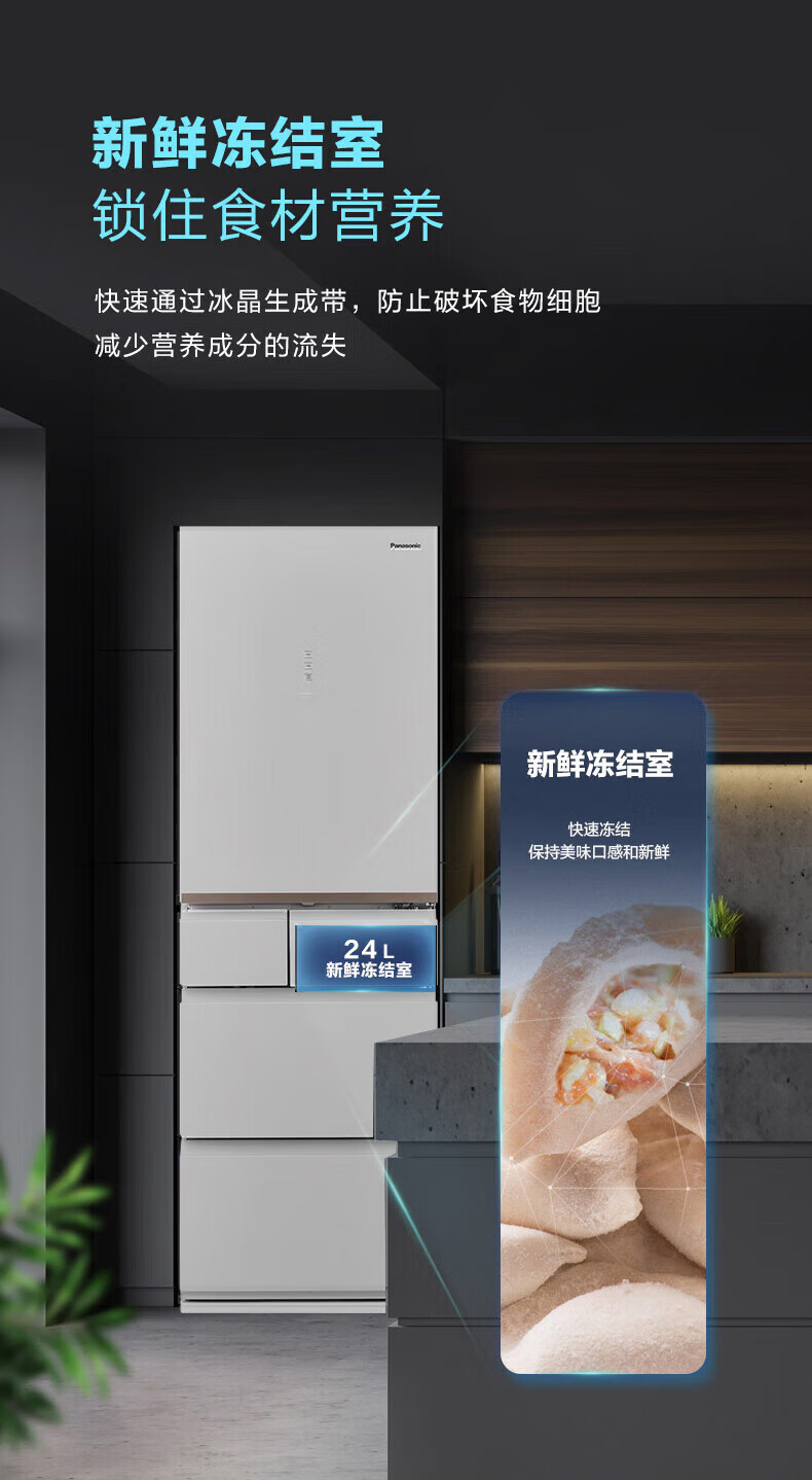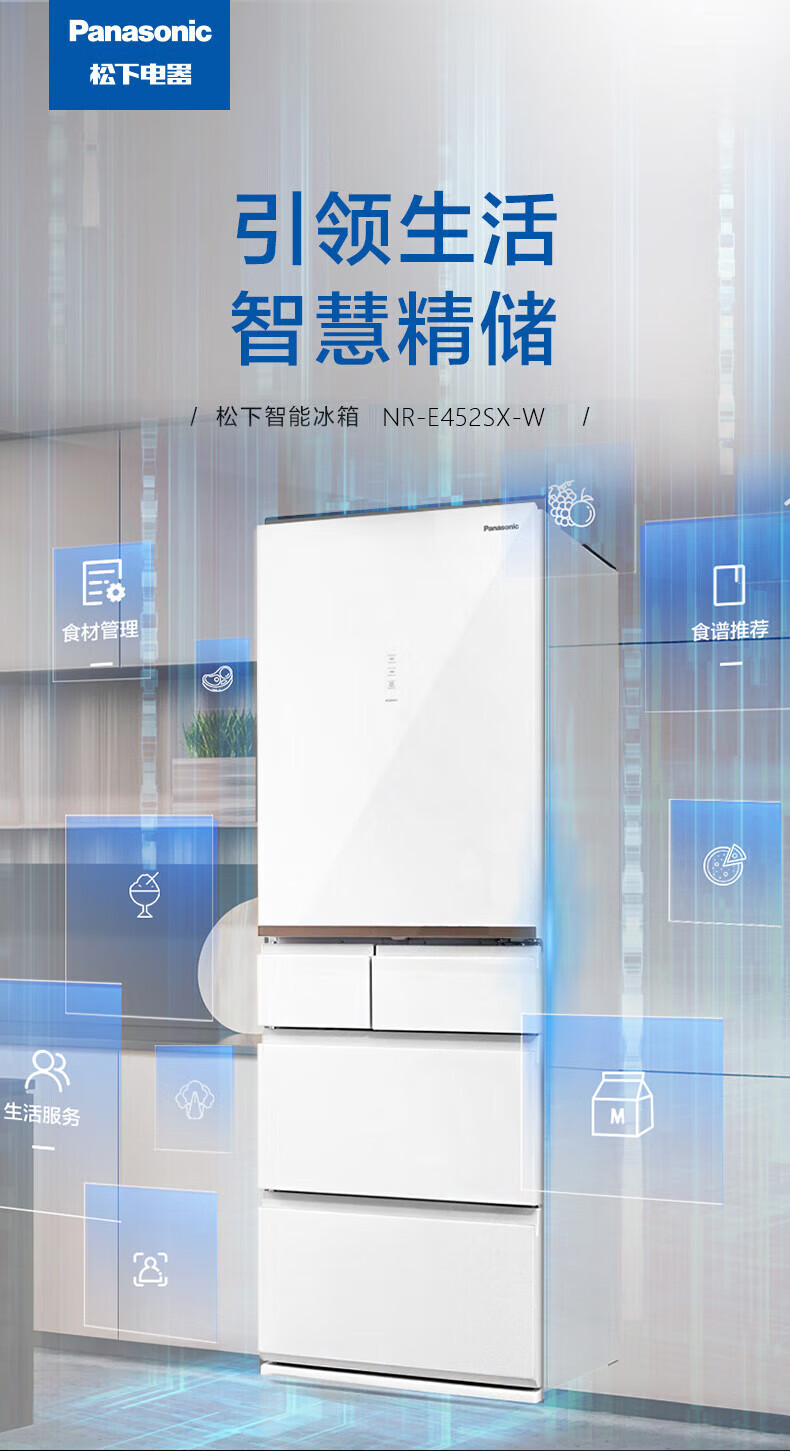 Panasonic NR-E452SX-W 435L air-cooled frost-free micro-freezing automatic ice making glass panel refrigerator tail cargo machine