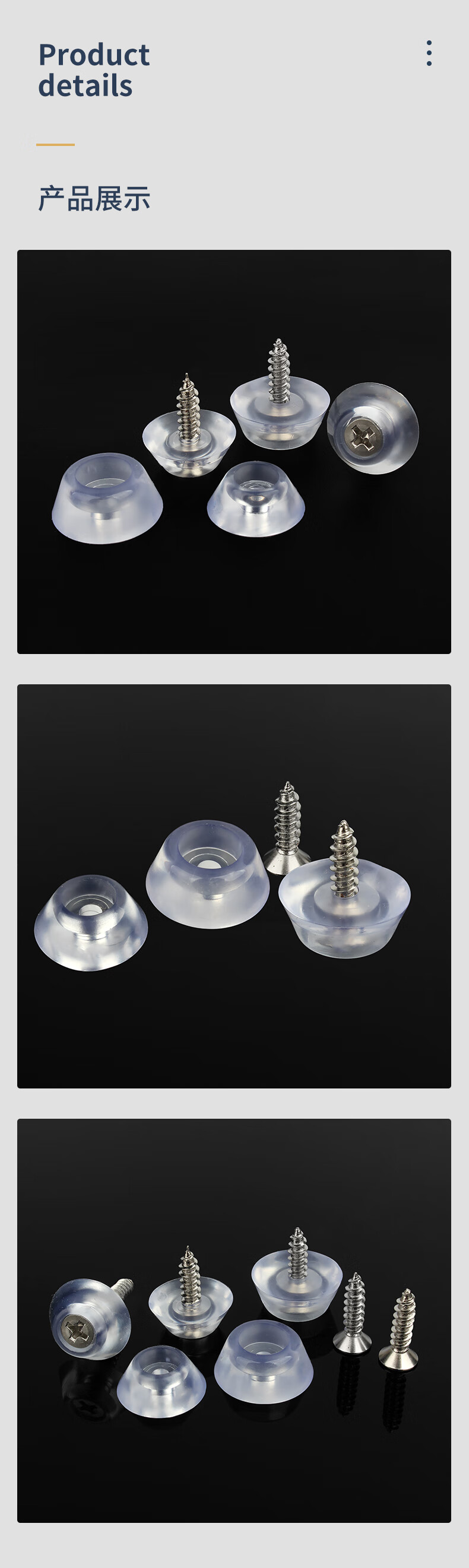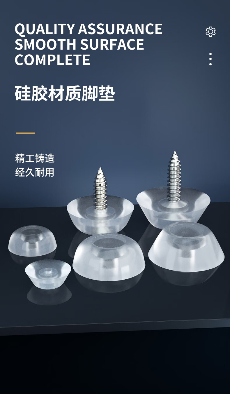 Guwanji silicone mat transparent foot mat furniture foot nail non-slip mat soft rubber mat self-tapping screw dining chair mat 17mm/20mm arc M17+ (iron nickel countersunk head M3x16) 20 sets