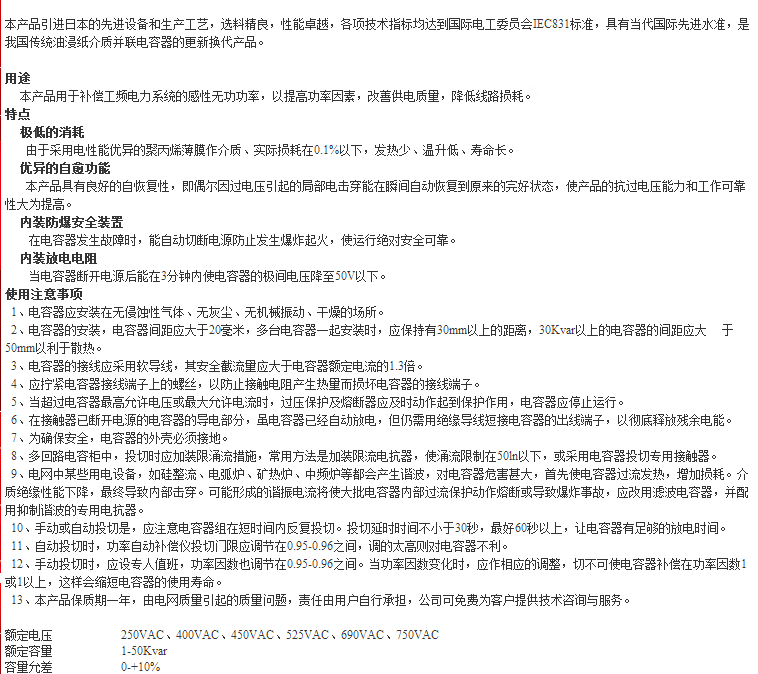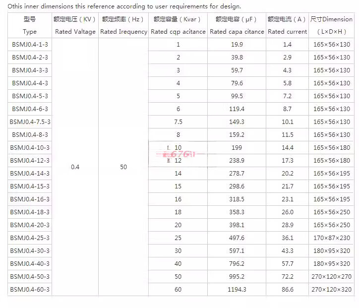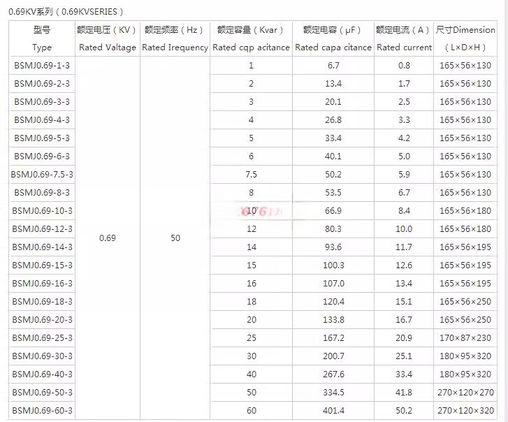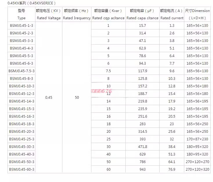 BSMJ0.45-10/15/16/20/25/30-3 self-healing low-voltage parallel power capacitor 0.25-30-3YN