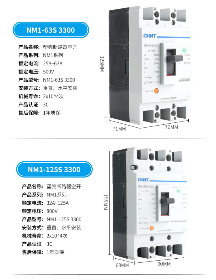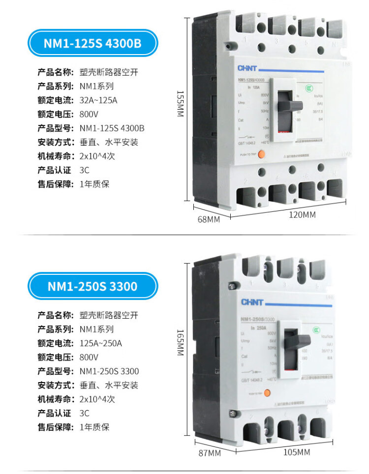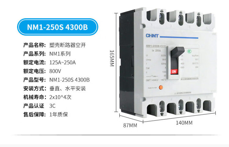 Plastic case circuit breaker air switch air switch NM1-125S/250S/3300/4300 -250A 400A 3P
