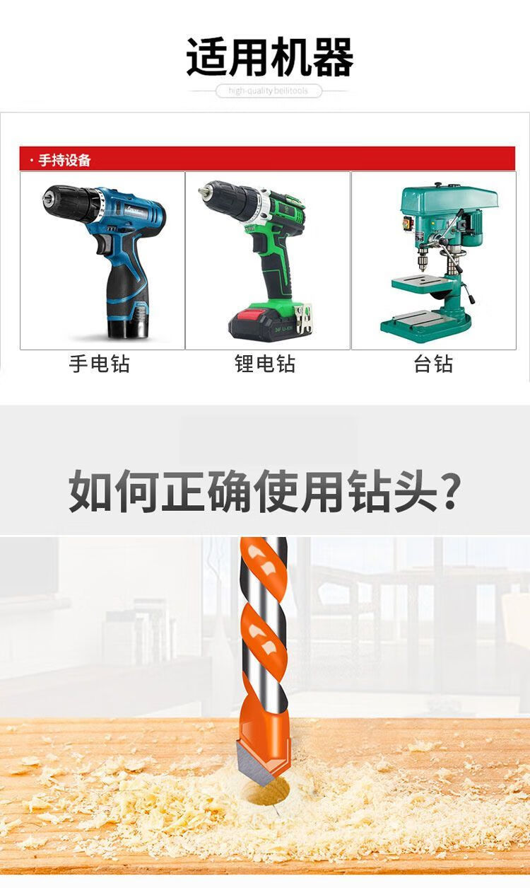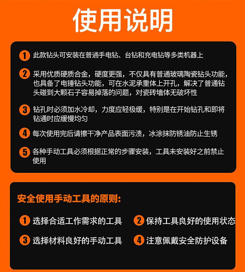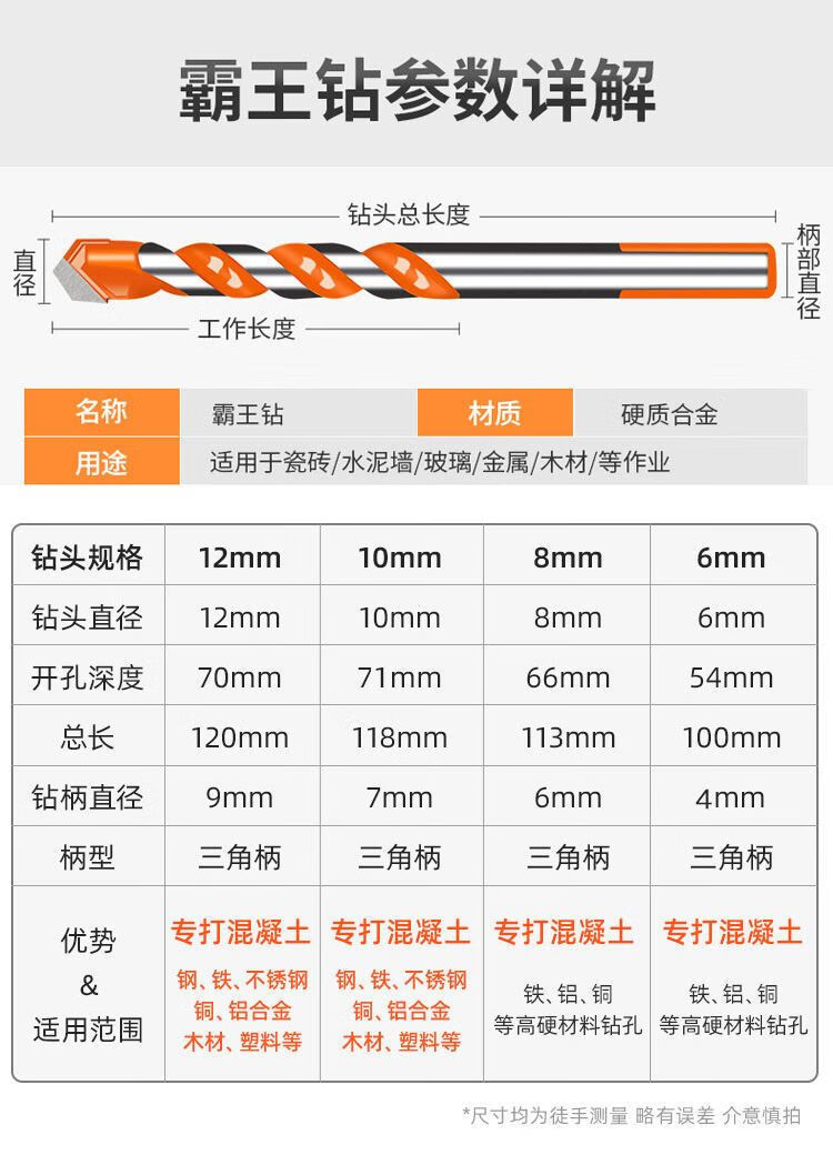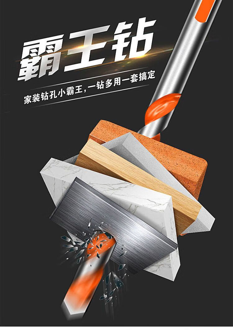 Gaoboshi tungsten steel overlord drill bit cement wall concrete tile electric drill to expand metal iron plate multi-functional drill 6mm 3+4+5+6 mm each overlord drill