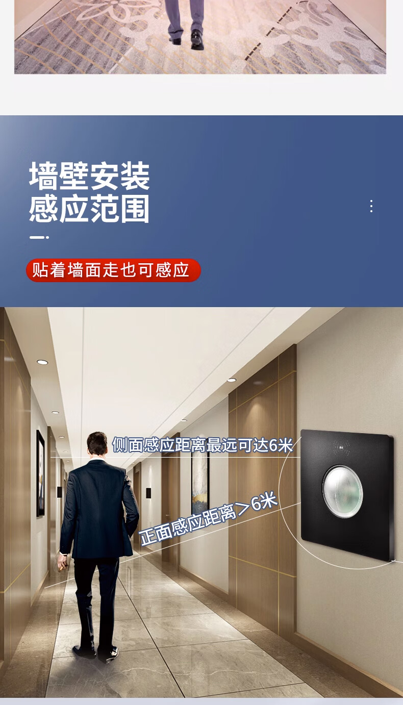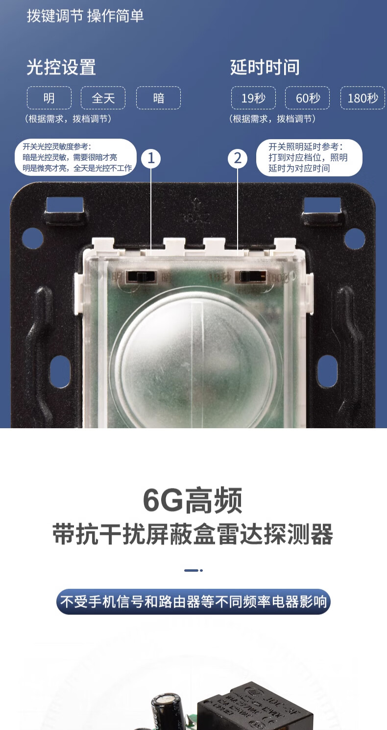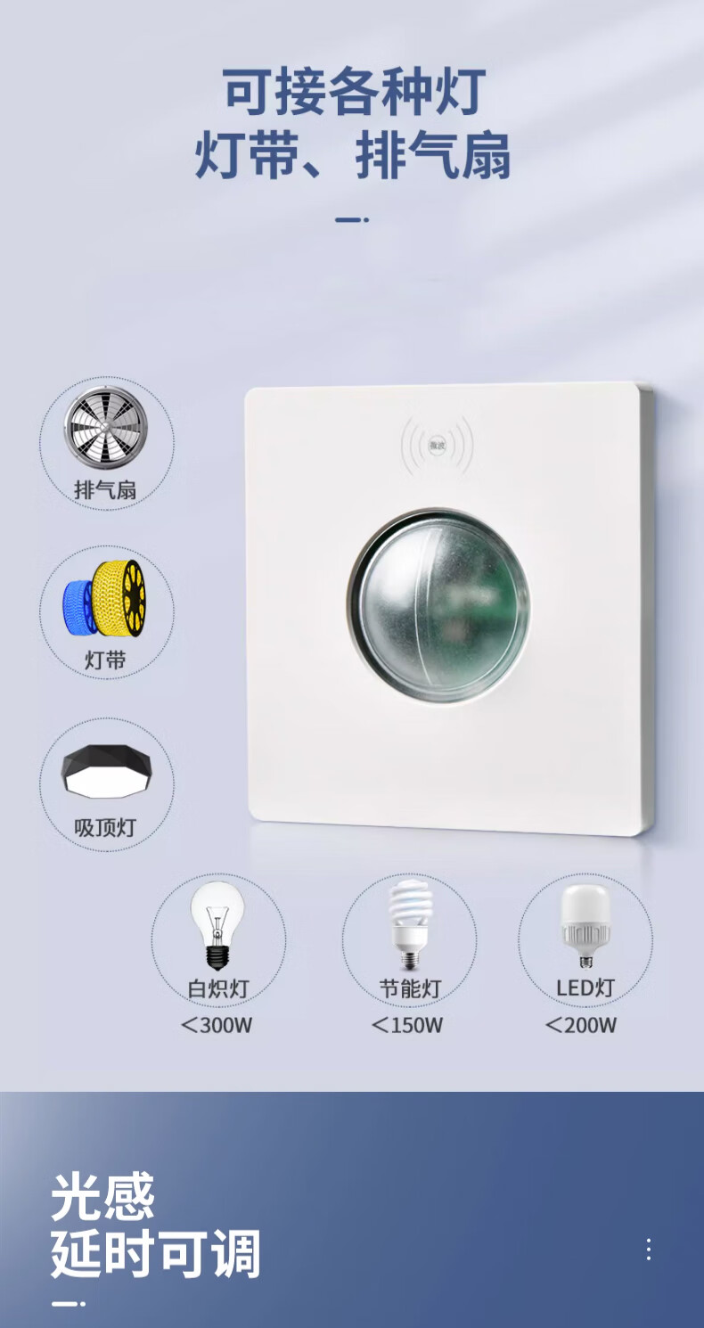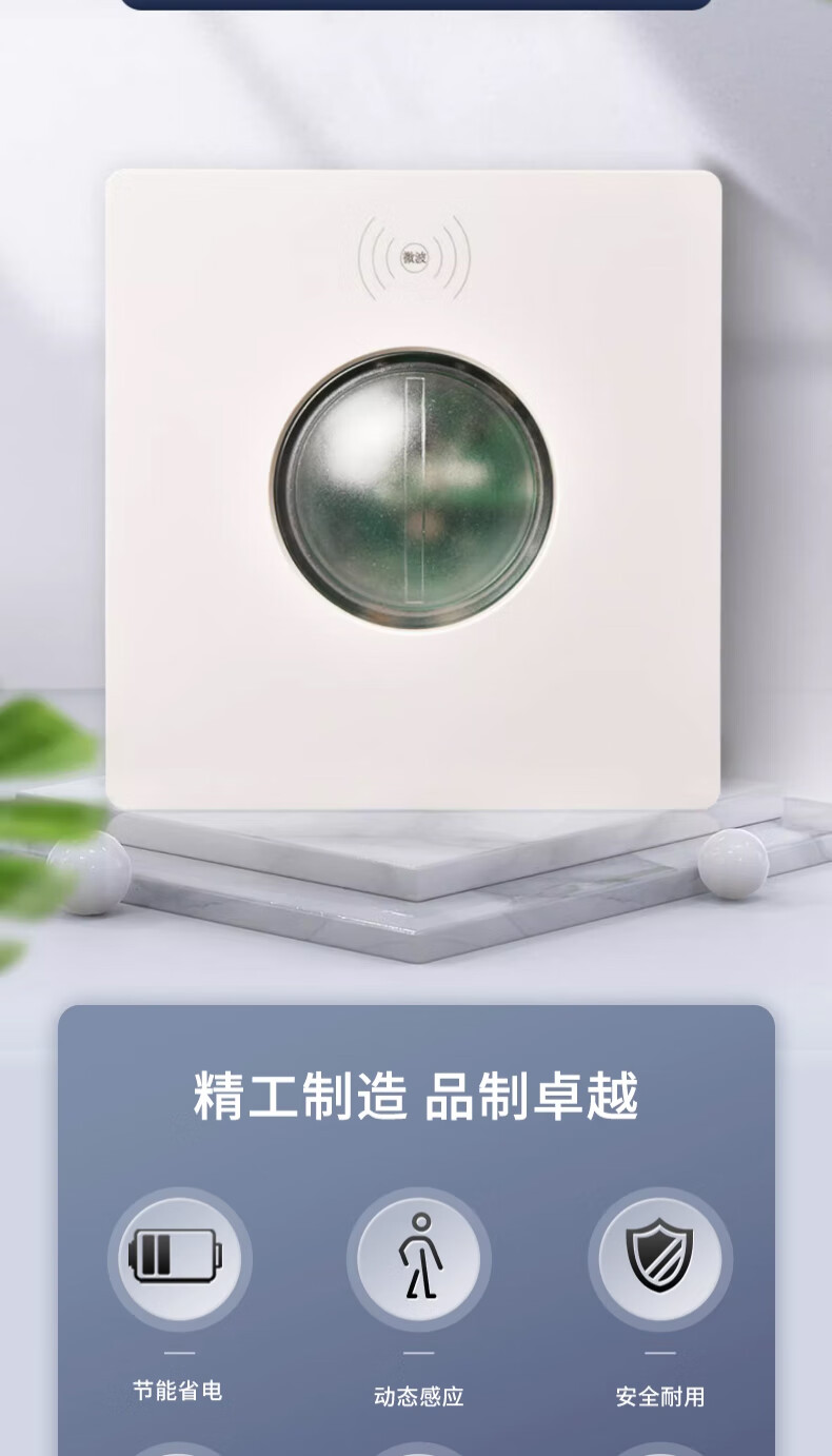 Type 86 delay distance light-controlled adjustable microwave radar sensor 220v wall panel 2-wire induction switch 200 watt 220V 2-wire elephant white